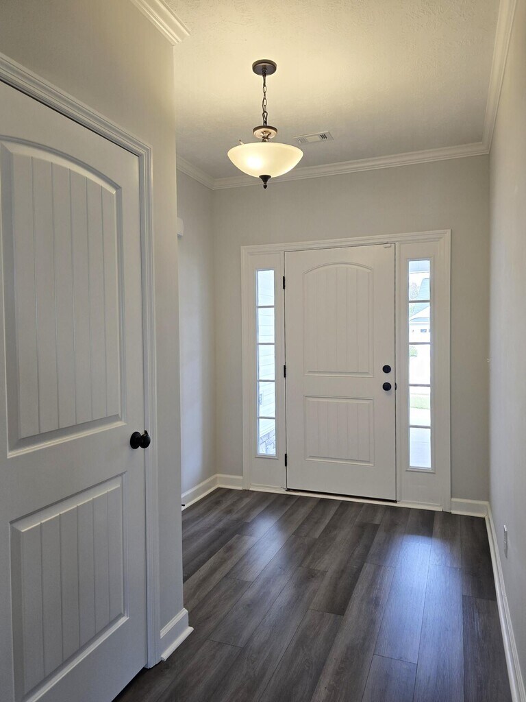 Available for immediate occupancy! Four bedroom,2 bath ranch home in Haynes Station subdvision! Covered front porch opens to foyer with coat closet. Adjacent 4th bedroom with double door closet. Foyer opens to open concept living space,including living,dining and kitchen areas. Tall ceilings in living room,ceiling fan and fireplace. Well equipped kitchen with granite counters,stainless appliances,subway tile backsplash,walk-in pantry,kitchen island with overhang for breakfast bar. Dining area has decorative chair rail and pendant lighting,as well as access to power pantry with additional water line for adding a fridge or stand alone ice maker. Primary bedroom with ceiling fan and walk in closet with en suite bath,including separate soaker tub and walk-in shower,dual sink vanity,linen closet and water closet. Separate hallway off living room leads to 2nd and 3rd bedrooms and 2nd bath. 2nd bath has dual sink vanity and tub/shower combo. Adjacent laundry room with washer/dryer hookup and cupboard and hanging shelf. Security system can be activated by tenant. 2 car garage with sprinkler system controller. Covered patio and fully fenced backyard accessible through the dining area. #goodtoask