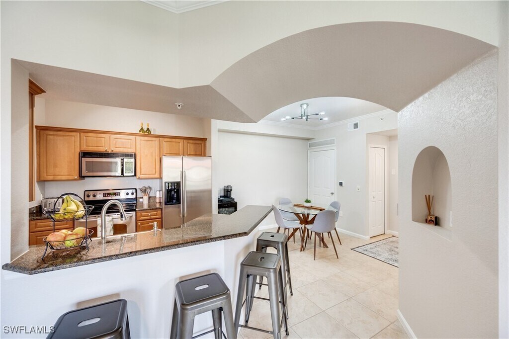 Welcome to Positano place A gated community in the heart of Naples. This rarely available pet friendly 3 Bedroom 2 Bath comes with a stunning view and an oversized Attached Garage with direct access into the building. Positano is Centrally located within a short drive to the Beach,5th Ave and the Mercado. It boasts Brand New updated modern Tiles throughout,brand new AC and New hurricane windows coming soon. The community boasts a resort style pool,spa and gym with a business center. Close to restaurants,Starbucks,gyms,schools and hospitals. Don’t miss this opportunity to have one of the best units in the community.