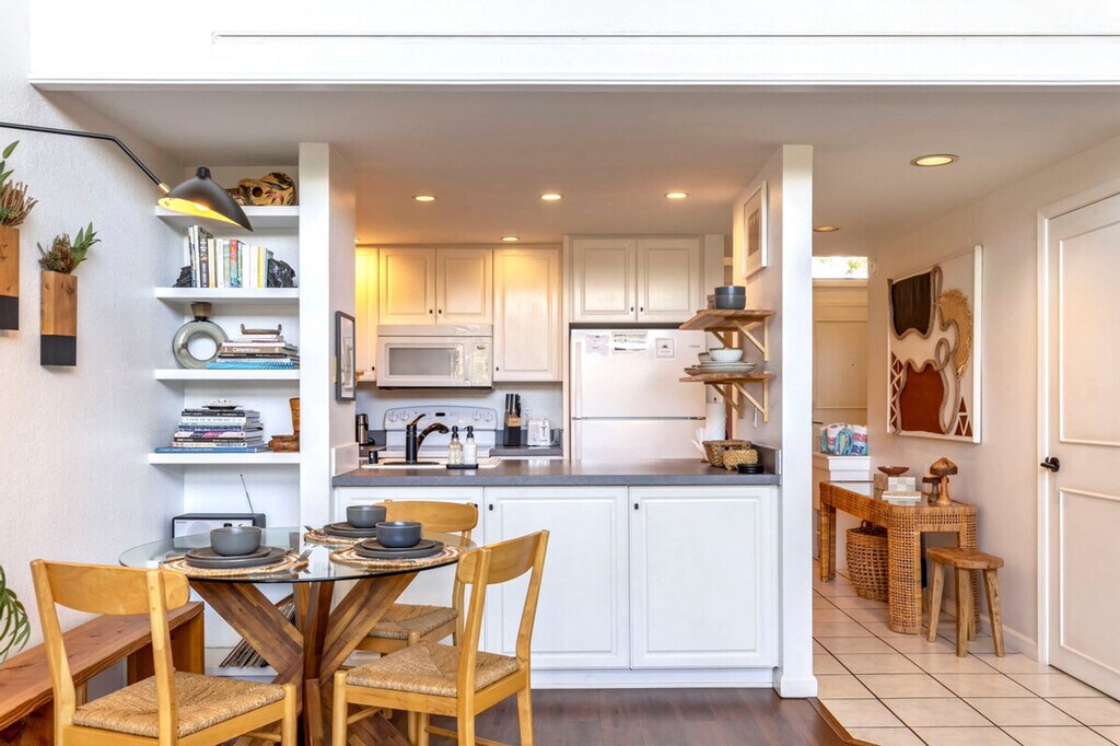 Discover the best of Kihei with this charming 2-bedroom, 2-bathroom condo located in the Kihei Garden Estates on the 2nd floor, spanning approximately 1,087 sqft. Feel at home in this cozy retreat, just steps from the beach, dining, and shops, offering a perfect blend of sun-soaked relaxation and local culture. This enchanting home features upgraded flooring and inviting two-story floor-to-ceiling windows that flood the space with natural light. Enjoy the open kitchen and living area, or retreat to the privacy of the upstairs primary suite. The kitchen is fully equipped with everything you need, and amenities include a community pool and BBQ area for your enjoyment. Ceiling fans throughout and an air conditioner in the living room ensure comfort during your stay. The washer and dryer are shared among all tenants. The regular nightly rate covers 4 guests, with additional guest fees of $25 per person per night, up to a maximum of 6 guests. Kihei is the perfect spot for your next Maui adventure, with long stretches of golden sand and crystal-clear waters ideal for swimming, snorkeling, and watching spectacular sunsets. The laid-back town boasts a vibrant atmosphere, with a variety of local eateries serving fresh seafood and Hawaiian specialties. Its central location allows easy access to other parts of the island, such as Lahaina and West Maui, or the Road to Hana on the East. South Kihei Road is very walkable with numerous restaurants and cafes, though driving is the best way to explore other parts of the island. Access is granted via a door code for self check-in at your convenience. This is not a pet-friendly home, with a $500 fine for unauthorized pets. Strictly no parties and events, quiet hours between 10pm-8am, no smoking or vaping of any kind anywhere on the property including outdoor areas, no digital piracy, and no shoes in the home, with a $500 fine per violation. Registration Number: 09, TA--01 [SI]