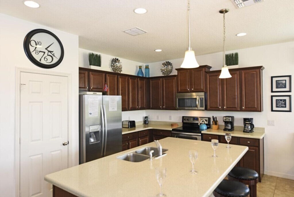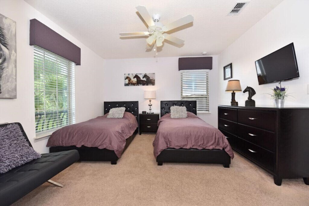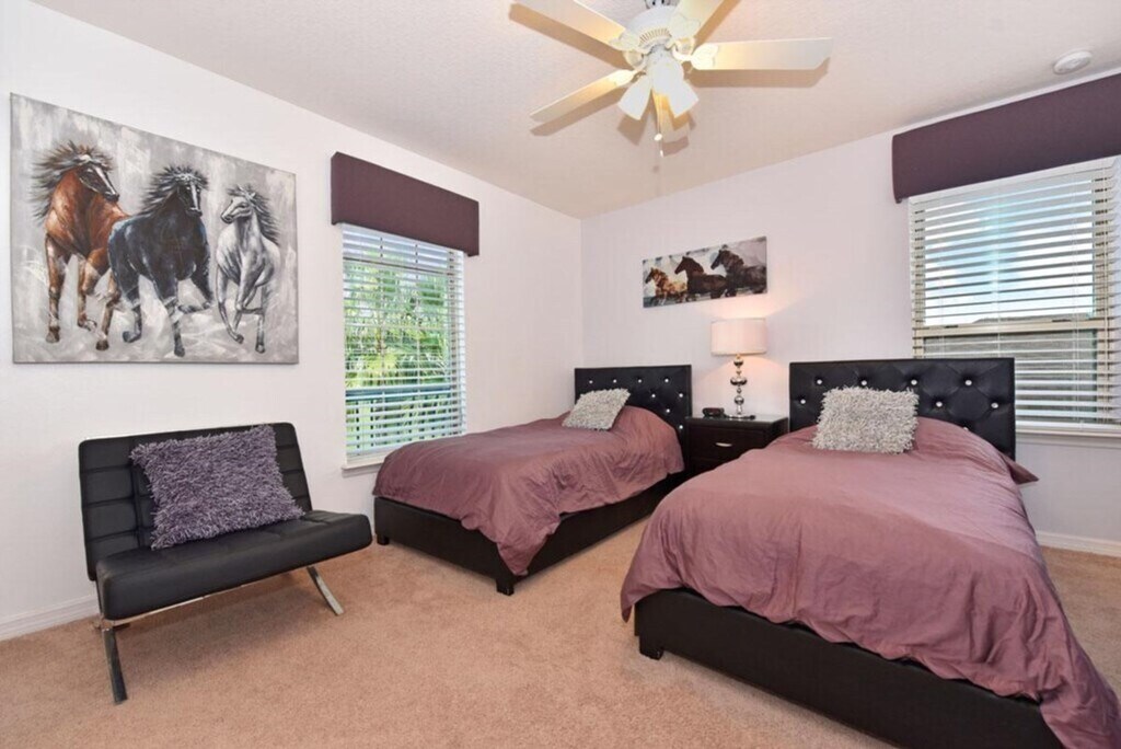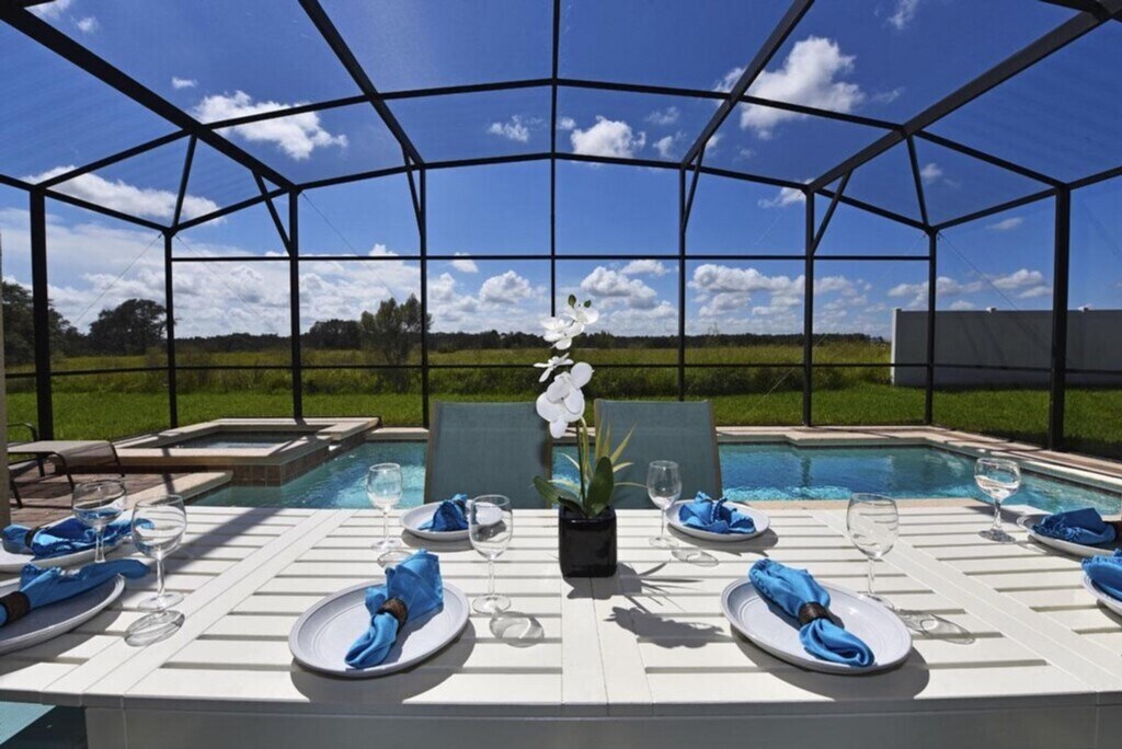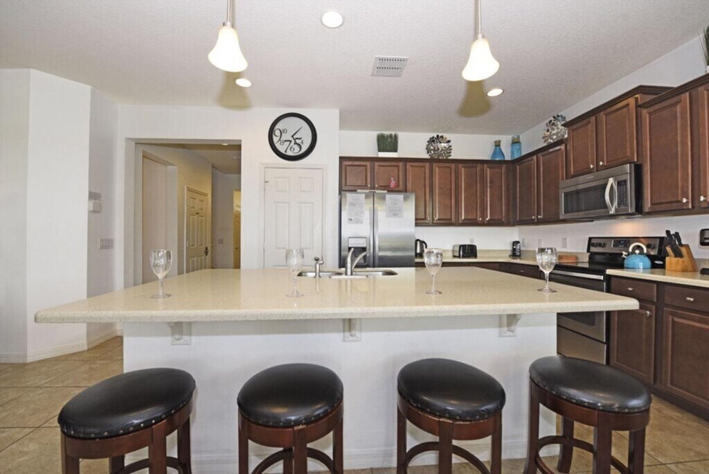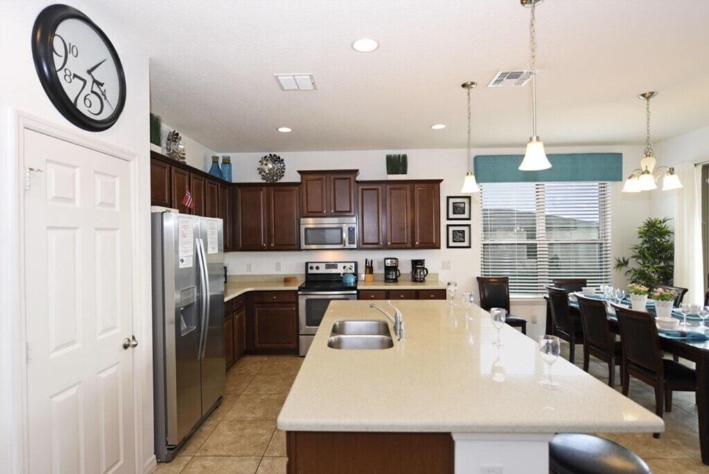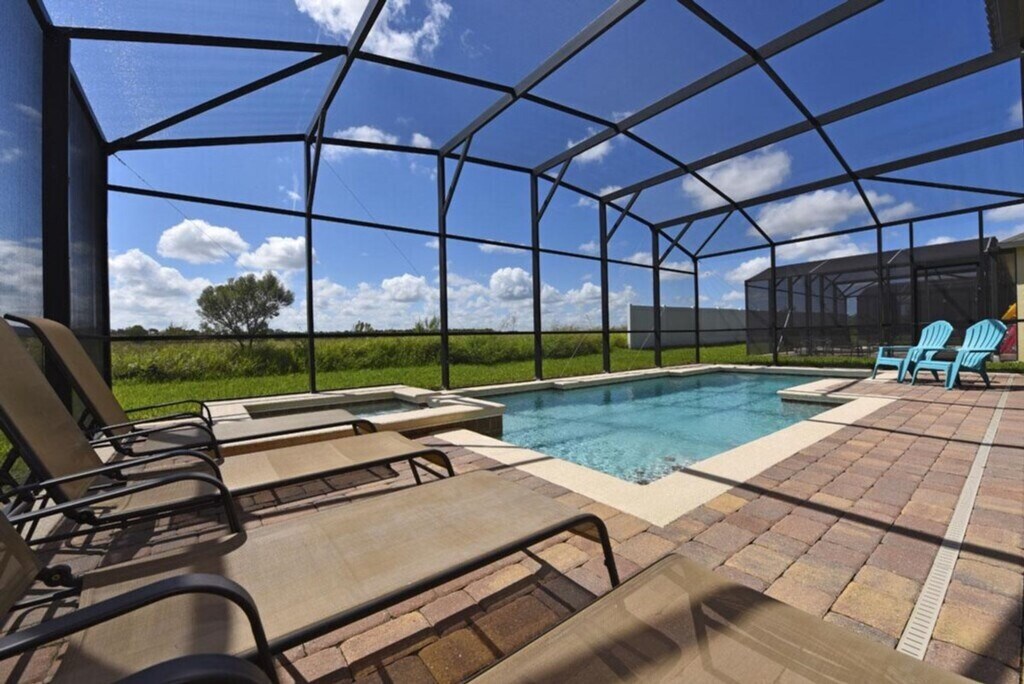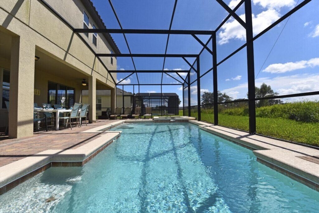 Welcome to this stunning 7-bedroom, 6-bathroom home located in The Dales at West Haven, a gated vacation rental community in Davenport, FL. Situated just a 20-minute drive from Walt Disney World® Resort, this home offers the perfect blend of comfort and convenience for your stay. Feel at home in this spacious property featuring a private swimming pool and spa, a cozy living room with a 60” flat-screen TV, and a loft with a pool table and seating area. The fully equipped kitchen includes seating for four at the kitchen island, while the dining room offers an 8-seat dining table. Enjoy the convenience of a 2nd-floor laundry room with a full-size washer and dryer, and stay connected with free Wi-Fi throughout the home. Enhance your stay with optional pool heat available for an additional charge of $35.00 per day. Mid-stay cleaning services can also be requested for an extra fee. Parking is available on the paved driveway, and visiting guests can park on the street during reasonable hours. Please note that no overnight street parking is allowed, and towing is strictly enforced. Located in a prime area, this home is just 3 miles from Publix Super Market and 2.7 miles from Champions Gate Golf Courses. Explore nearby attractions such as Poser Park Shopping Center (3.5 miles), Walt Disney World® Resort (9 miles), and Island H2O Water Park (10 miles). With easy access to Orlando's top destinations, including Universal Studios and SeaWorld, you'll have endless entertainment options at your fingertips. This home is self-catering, so you'll need to provide your own food, condiments, toiletries, and cleaning supplies. No parties, smoking, or pets are allowed, and quiet hours are from 9:00 PM to 8:00 AM Eastern Time. A charge of $300.00 plus any damages will apply if house rules are not complied with. Check-in is at 4:00 PM and check-out is at 10:00 AM, with self-check-in available via a Smart Lock. Additional charges apply for early check-in or late check-out. The loft area includes a desk space, providing a convenient spot for remote work. Free Wi-Fi is available throughout the home, ensuring you stay connected during your stay. A laptop computer is not included. [SI]