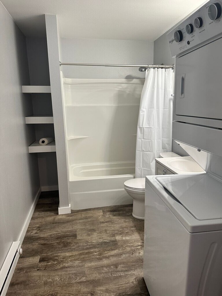Adorable 1BD/1BA home located in Houston! Freshly updated flooring and paint. Galley style kitchen with fridge, electric stove and built in microwave. Large bathroom with built in storage shelves. Washer & dryer included! NO PETS Tenant is responsible for electric & internet, owner handles snow removal and refuse.