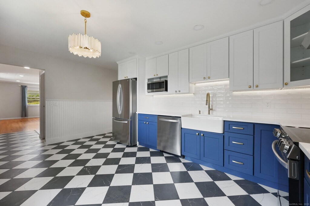 Call for Availability - Renovated Ranch located in the desirable Glenville neighborhood of Greenwich. This pristine, move-in ready home features an expansive living room, a gourmet kitchen equipped with Quartz countertops, a farmhouse sink, and LG appliances. The home has central A/C and hardwood floors throughout. The main floor comprises of three generously sized bedrooms with custom closets and a full bathroom. The lower level offers an additional bedroom or office, a full bathroom, a versatile living area, laundry area, and lots of storage space. 1 car attached garage with a high powered EV charger and fenced in back yard. MLS# 24117465