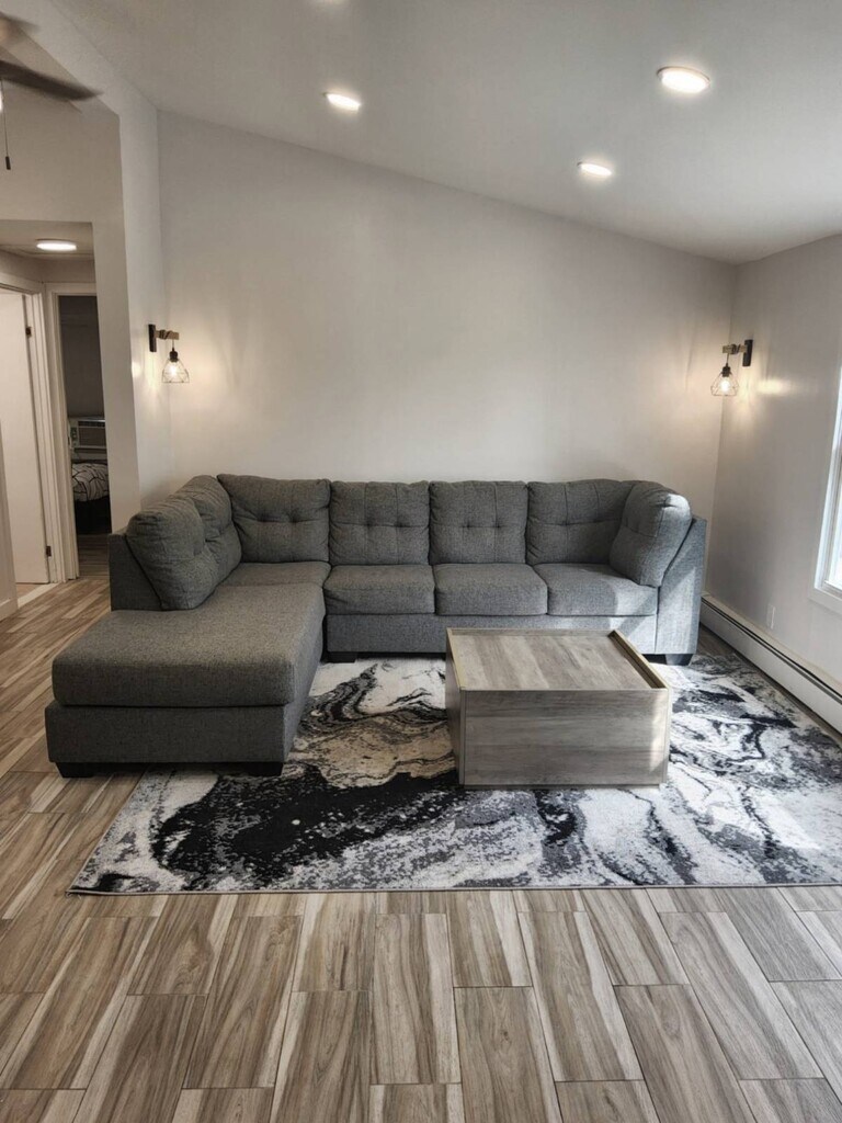 This beautifully renovated 3-bedroom, 2-bath ranch is nestled in a quiet community. A newly blacktopped driveway and an additional stone drive provide ample parking. Inside, you will find an open floor plan with an updated kitchen, complete with granite countertops, stainless steel appliances, and porcelain flooring. A tucked-away laundry area and a dining space are conveniently located off the kitchen. Brand-new carpeting adds warmth to the bedrooms. The furnace is approximately four years old. The desirable floor plan places the primary suite on one side of the home, providing privacy from the two additional bedrooms and full bath. The backyard features a large shed, a deck, and a fenced-in area. Huge basement for storage. Qualified tenants only. Must have strong credit. Income verification required.