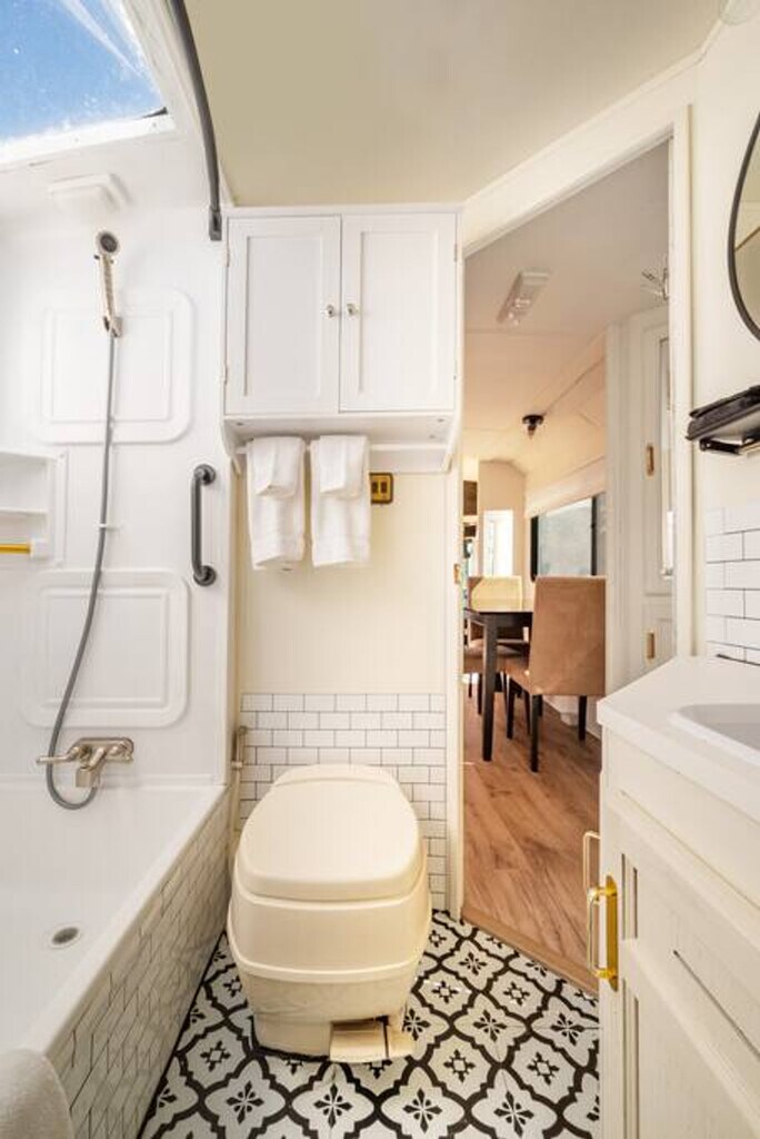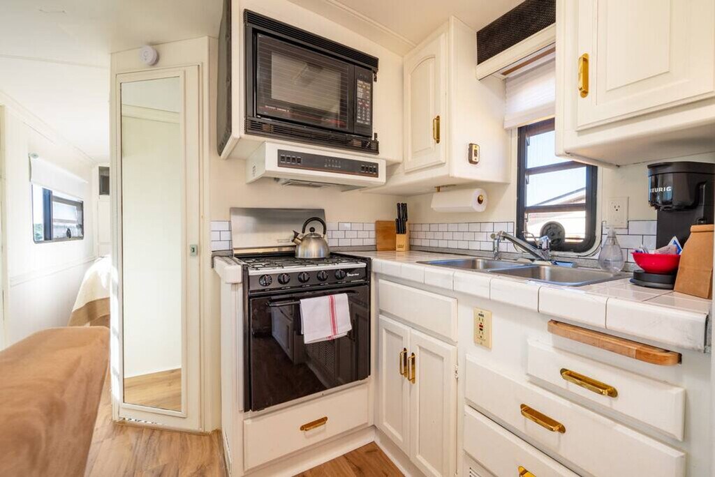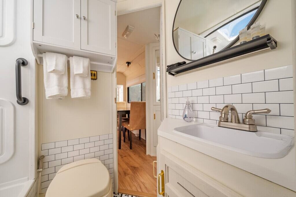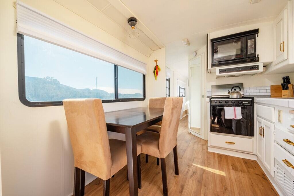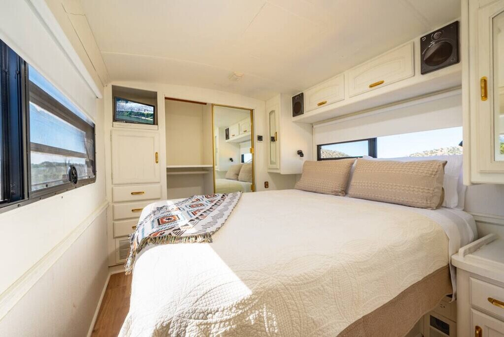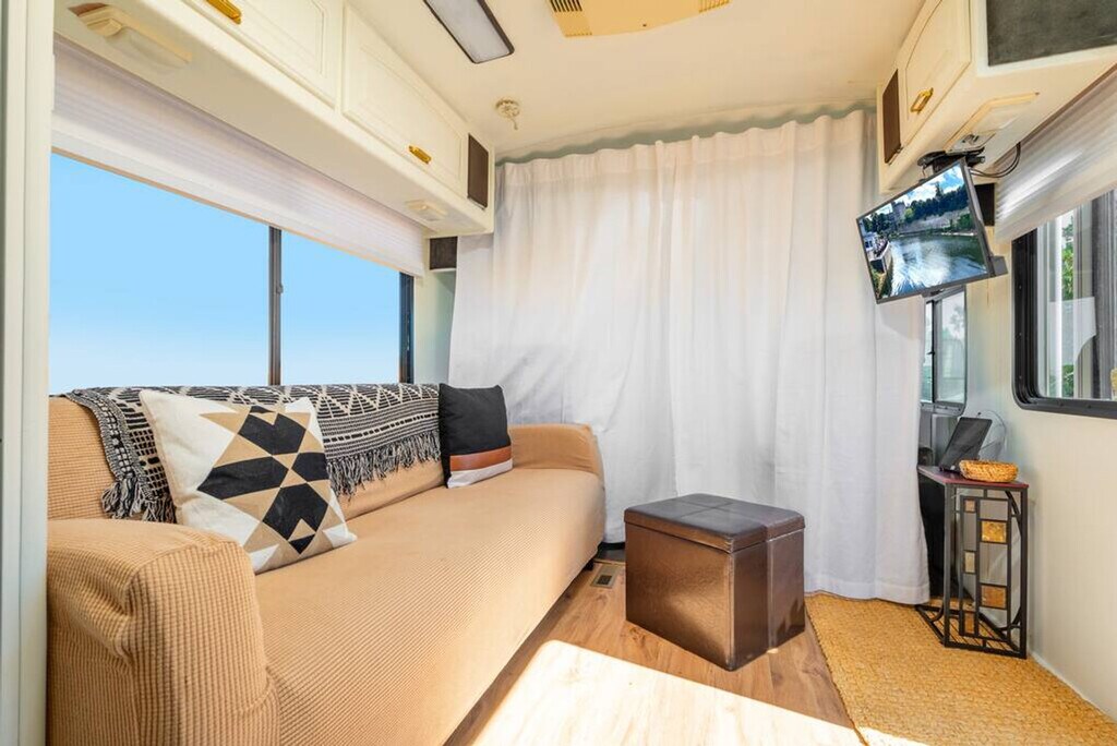 Welcome to this charming RV, nestled in the serene outskirts of Santa Fe. Escape the hustle and bustle of the city and immerse yourself in the beauty of nature while enjoying the comforts of modern living. Located just 15 minutes from the plaza, you can easily enjoy all that Santa Fe has to offer. Step inside and be captivated by the warm and inviting ambiance of the well-appointed living space. Recently renovated, the interior showcases a thoughtfully designed layout that maximizes comfort and functionality. Relax in the comfortable seating area, where you can unwind and enjoy breathtaking views of the surrounding natural beauty or stream a show on the Smart TV. The fully functional kitchen is equipped with modern appliances and stocked with all the necessary cookware, providing everything you need to prepare delicious meals. After a day of exploration, retreat to the cozy bedroom featuring a plush queen-size bed and a TV equipped with a Roku player. The RV also features a modern bathroom with all the essential amenities. One of the highlights of this RV experience is the outdoor gas firepit, perfect for relaxation and enjoying the peaceful beauty of the natural surroundings. Baby equipment is available on a first-come, first-served basis for an additional fee. More details can be provided if you are interested. Beyond the comforts of your temporary home, Santa Fe beckons with its rich cultural heritage and vibrant art scene. Explore the nearby art galleries, museums, and historic sites that showcase the city's unique charm and history. Take scenic hikes or leisurely strolls amidst the foothills, immersing yourself in the awe-inspiring beauty of nature. The TVs do not have traditional cable but can stream Netflix, Hulu, and more using your account. There is an A/C in the main area as well as the bedroom. Being an RV, it has everything you need for a great stay, but it does have its limitations. There is a potential for noise outside from the highway. The landscaper comes every other Monday to clean up around the patios, driveway, and yard areas. Quiet time outside starts at 10 pm. After your departure, an inspection of the property will be conducted and any damage or excessive cleaning will be charged to your card on file. Smoking indoors is not allowed and you will be charged a $500 cleaning fee if you smoke in the house. Pets are not allowed and if evidence of a pet is found, a $300 cleaning fee will be charged. Off-street parking is limited and varies by house. One vehicle is allowed in a studio and one-bedroom house. Check-in and check-out times are specified in the house manual or booking confirmation. Late check-out without approval may incur a fee of $40 per hour if it interferes with the next guest's check-in time. The RV is equipped with Wi-Fi, allowing you to stay connected even while enjoying the tranquility of nature.
