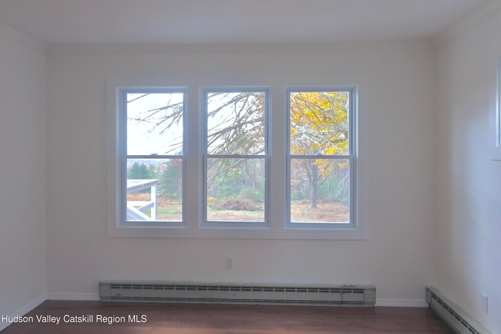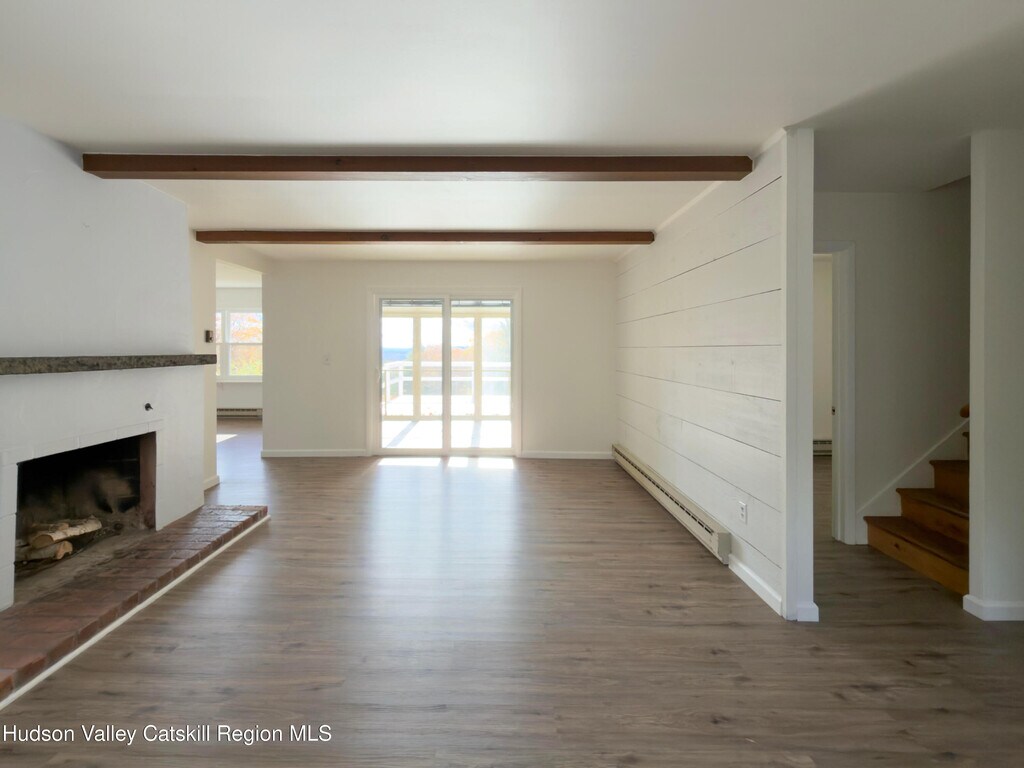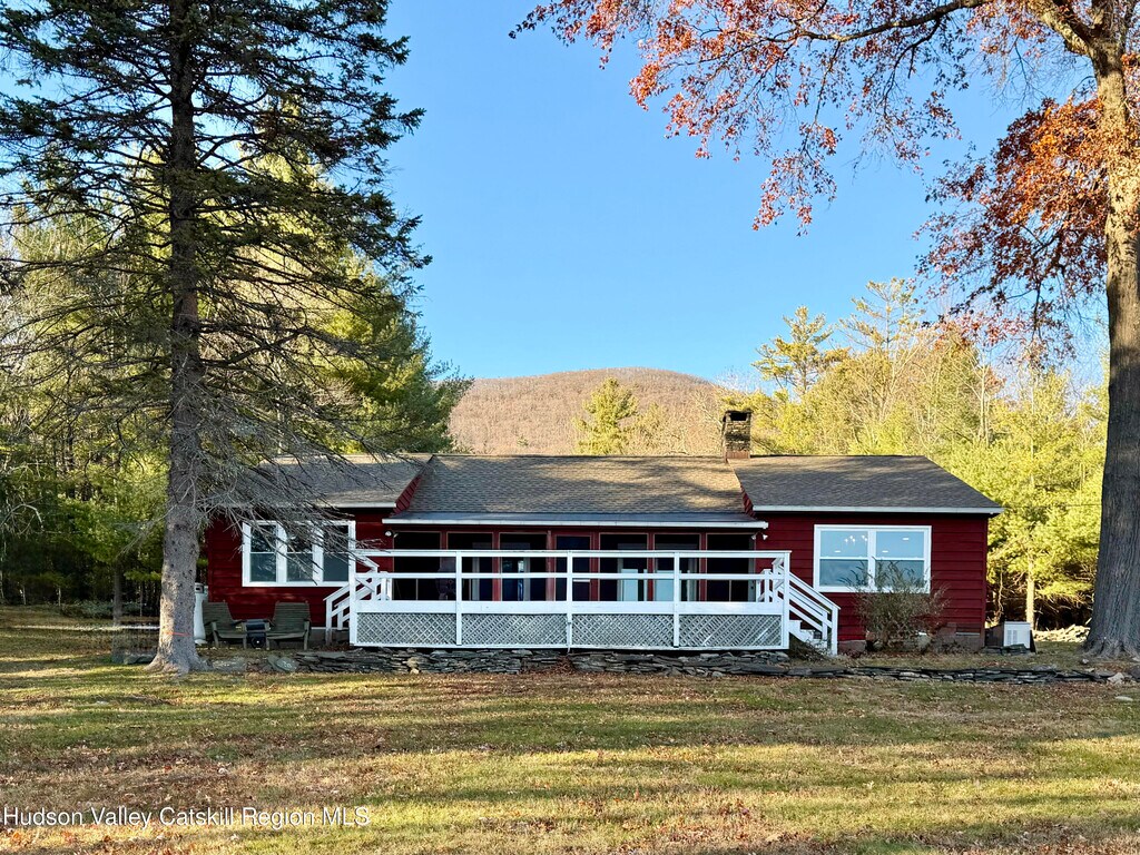 This recently updated ranch home is sun-lit with spectacular Catskill Mountain and Ashokan Reservoir views,and has been freshly painted inside and out. It is sited on an expansive meadow with beautiful old stone walls and soaring trees off a quiet country road under 20 minutes from the vibrant village of Woodstock and the City of Kingston. The heart of the home has a circular floor plan. The living room has an ornamental fireplace,and sliding glass doors that lead out to the screened porch,back deck and yard,all with gorgeous year round views. The adjacent large sunny eat-in kitchen has abundant counter and cabinet space as well as a dishwasher. The dining area has large windows with spectacular views and a back door that also leads to the screened porch and back deck. Down the hall there are two bedrooms with ample closets,a full bathroom with tub/shower,a small office and the cozy walk-up additional room. The half bath with a washer and dryer is located off the entry foyer.
