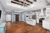Recently renovated,new ceramic tile flooring,fresh paint,marble countertops,farmhouse kitchen sink. Office/study,split bedroom design,modern light fixtures/ceiling fans,large patio and spacious backyard. Refrigerator,stove,microwave are included,220V EV charger installed in the garage.