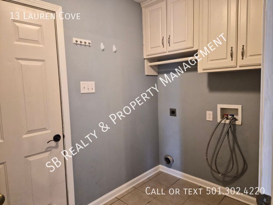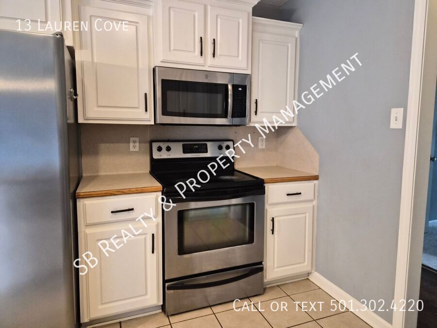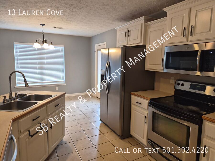 Welcome home to 13 Lauren Cove in Cabot. This home is 4 bedrooms, 2 bathrooms with garage parking. In the kitchen, appliances provided with ample cabinets for storage. Primary bathroom has large soaker tub & separate shower. Double vanities and walk in closet. The backyard is spacious & fenced. Renters insurance is required. KEY FEATURES: 4 bedrooms, 2 bathrooms $2,500 rent, $2,500 deposit, $45 application fee Renters insurance required $15 per month (or bring your own) Lease starts at 6 months Pets OK (max 2)