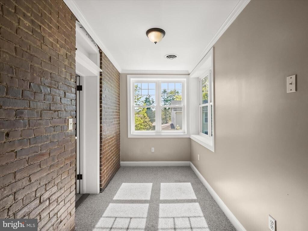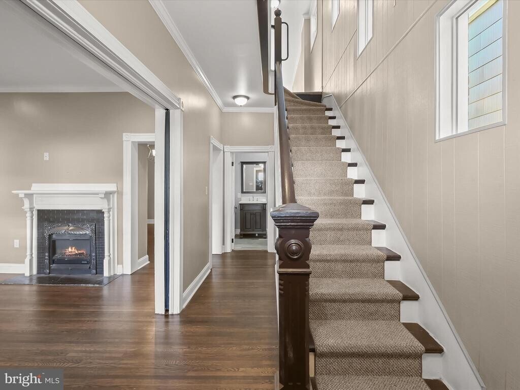 Welcome to 13 N Allegany Street a solid brick beauty filled with natural light and thoughtful updates throughout. Step onto the charming covered front patio, setting the tone for the inviting interior. The spacious living room features hardwood floors, a bay window that floods the space with sunlight, and a cozy fireplace perfect for relaxing evenings. Just off the living room, the dining room boasts elegant glass and wood doors and a built-in China nook, adding a touch of vintage charm. The eat-in kitchen is a chef’s delight, offering granite countertops, decorative backsplash, crown molding, and direct access to the expansive deck ideal for entertaining or quiet mornings outdoors. A main level powder room and laundry room add convenience to everyday living. Upstairs, the primary bedroom serves as a serene retreat, complete with a renovated en-suite bath featuring a modern track door, tray ceiling, bay window, and hardwood floors. Two additional bedrooms and a beautifully updated full bath complete the upper level. Outside, enjoy the expansive deck and spacious backyard, perfect for gatherings, play, or gardening. This home seamlessly blends classic character with modern comfort don’t miss your opportunity to make it yours. Some photos have been virtually staged