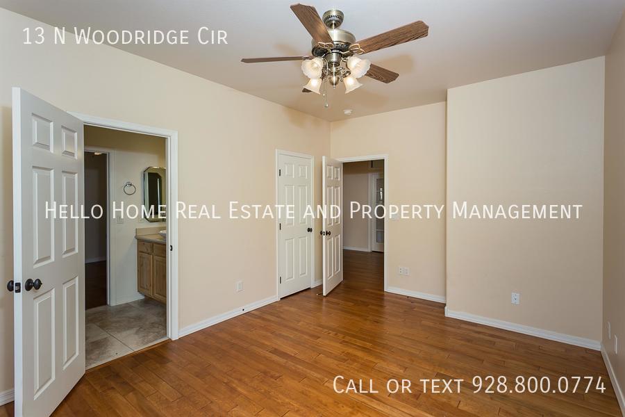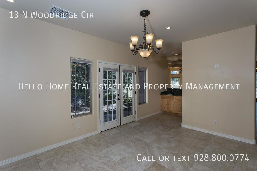 Huge private home in The Ranch at Prescott. 3 bedrooms, 2.5 baths, family room, dining room, living room, large open kitchen with eat in kitchen, laundry room with utility sink, and 3 car garage. Master bedroom has two closets, a private patio, and a fireplace. $20/admin fee will be added to monthly payment