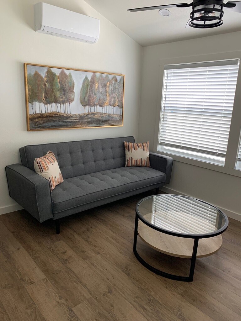 This is a small tiny house projet whicy includes 3 homes. Persons over the age of 55 recommended. House is furnsihed with sofa/sleeper,coffee table,two guest chairs with floor lamp,ONE Smart TV,full size electric range and refrigerator,and microwave/vent-a-hood. Bedroom has a queen size bed with frame that offers 3 storage drawers. Two night stands with lamps,stackable washer and dryer in walk-in closet measuring 6.8'x3'. AGENT/OWNER will be ahppy to furnish kitchen dishes,etc. if requested. Tenant pays electricity and Internet. All other utilities furnished by owner. MLS# 82766251