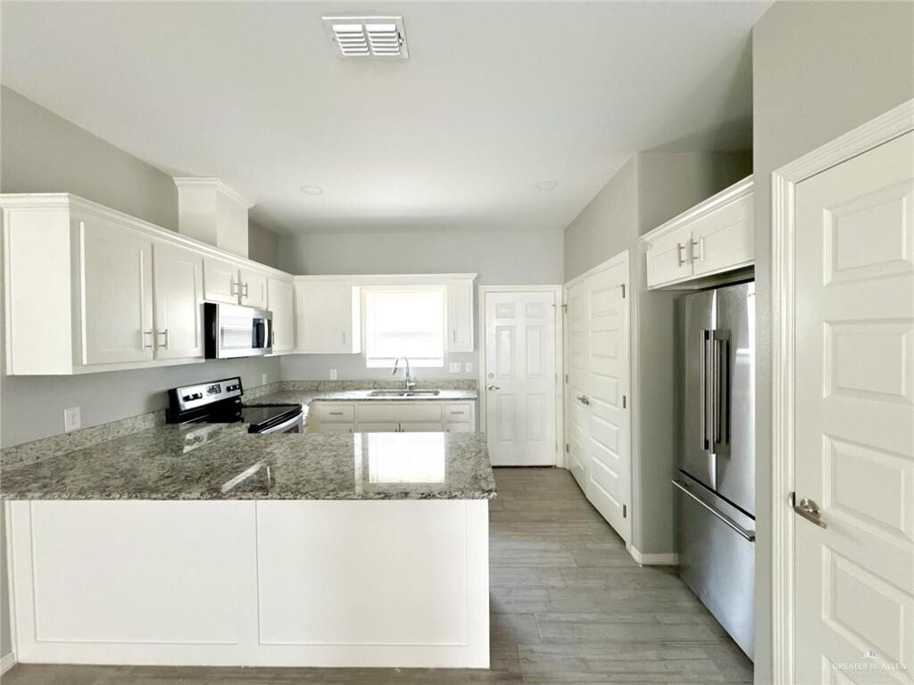 AVAILABLE MAY 2026! 50% off promo on 1st months rent! WATER INCLUDED! Apply NOW Gated Subdivision in WESLACO - AIRPORT HEIGHTS Enjoy beautiful open space interior design,contemporary tile,Granite Countertops,modern lighting features,Custom Cabinets and island in Kitchen. Ceiling Fan in Living and Bedrooms gorgeous vanities. Property Features: Stainless Steel Refrigerator,Stove and Microwave Full Size Washer and Dryer Water and Landscaping included.