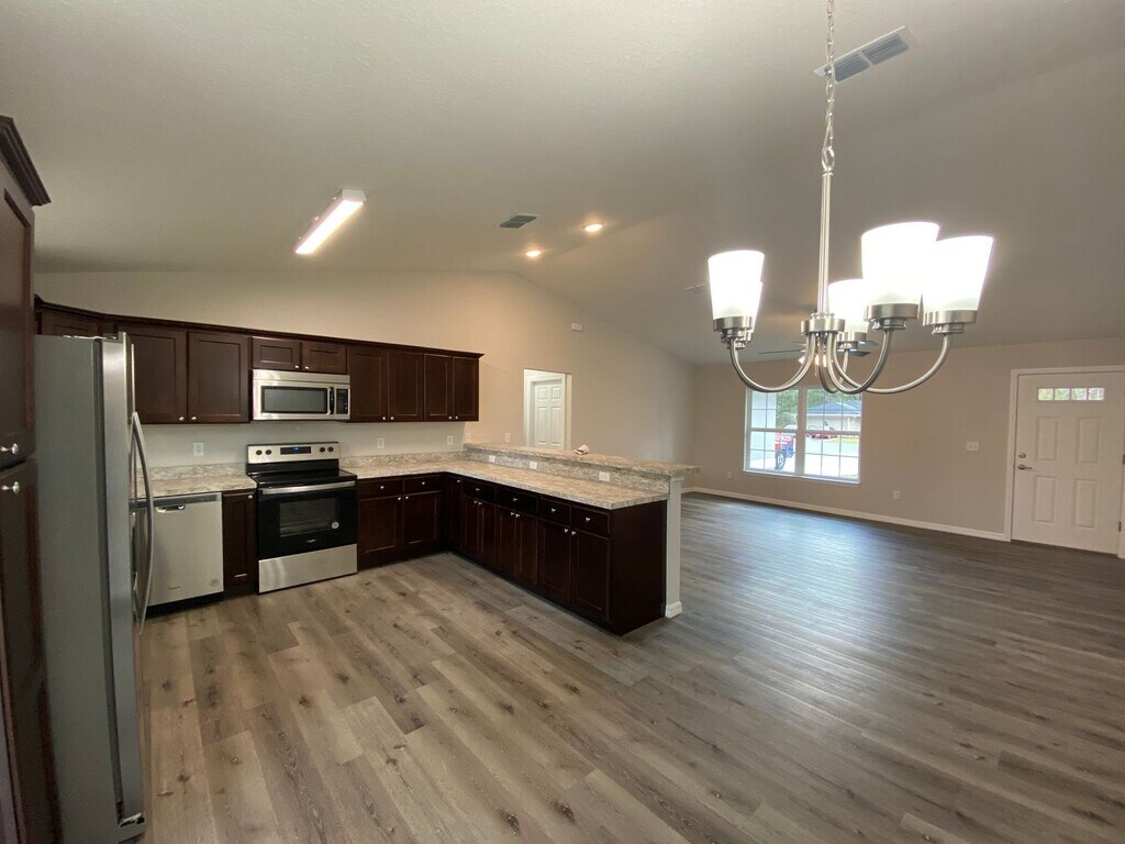 To schedule a Showing or Submit an Application please visit: Custom Built Construction. You will love this 3/2/2 Home sitting on a beautiful lot. Walk inside this open floor plan and you can imagine get togethers here in Kitchen and living areas. The all wood Shaker cabinets are soft close with dressier brushed nickel cabinet pulls. Stainless steel appliances compliment your kitchen with a large kitchen bar top for entertaining. Enjoy the Luxury Vinyl Plank flooring in living areas, carpet in the bedrooms with ceiling fans in all rooms. Large Master Bedroom. Both bathrooms feature Shaker Cabinets with a walk-in shower in the master bedroom and gust bath has a steel tub/shower combo with nice tiled walls. 2'' Blinds on windows, and an automated garage door opener included. All RPM Diversified residents are enrolled in the Resident Benefits Package (RBP) for $39.95/month which includes renters insurance, credit building to help boost your credit score with timely rent payments, $1M Identity Protection, HVAC air filter delivery (for applicable properties), move-in concierge service making utility connection and home service setup a breeze during your move-in, our best-in-class resident rewards program, and much more! More details upon application. Non-Smoking Home. Renter's Insurance is required! First and Security required to Move-In, $250 Lease administration fee, additional fees required! Our property offers deposit-free leasing using Obligo billing authorization technology (for qualified renters). Available with no security deposit with Obligo! There are restrictions on pets, if pets are allowed, there will be additional fees required. By applying to lease with Real Property Management Diversified you will have to create either a pet/animal profile or a no-pet profile using our firm’s third-party screening service. Click here to start. Please Note: We do not advertise on if you see this house advertised on it is a scam.