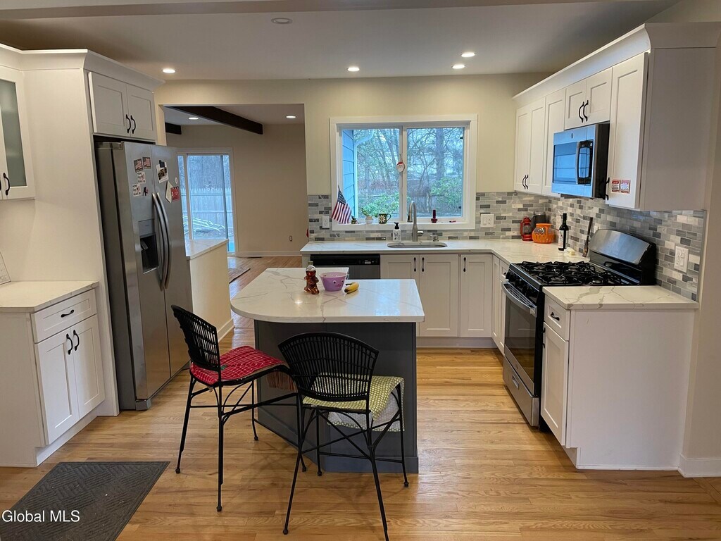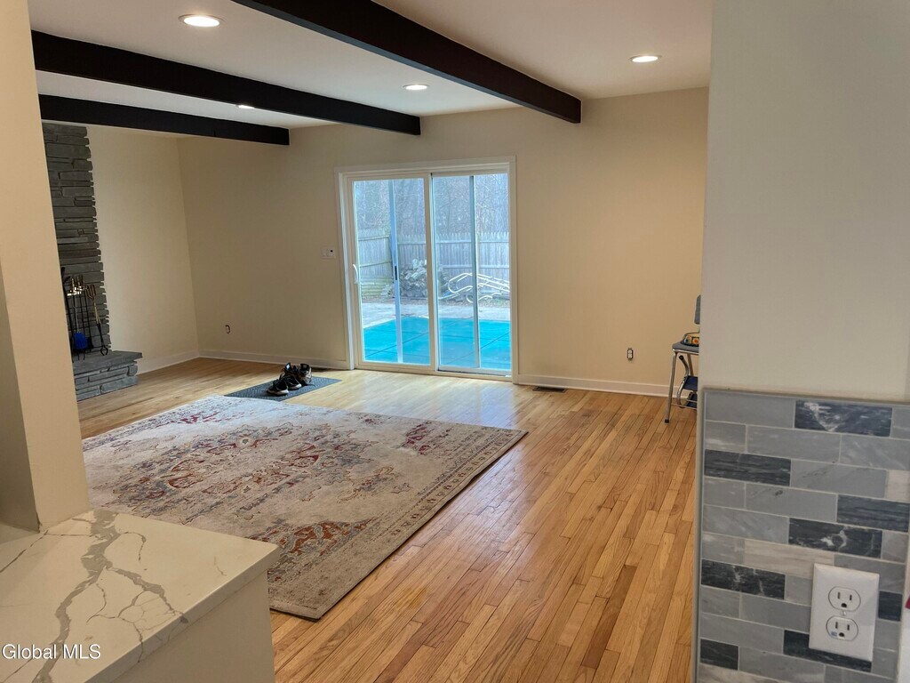 Fully updated two-bedroom,one-bath ranch home with attached one car garage conveniently located off Central Avenue,close to the Northway and Thruway and backs up to Cook Park. Mostly hard wood floors throughout,modern kitchen with newer appliances and bathroom,living room and large den with fireplace and walk out to swimming pool. Lots of natural light throughout. Central heat and air conditioning. Large basement for additional storage and washer/dryer hookups. Bedroom sizes are (12.5 x 9.5) and (11.4 x 8.9). Large,fenced backyard with in-ground swimming pool. Available showings this week are Monday,Tuesday,Thursday 1-5pm by appointment. MLS ID 202615370
