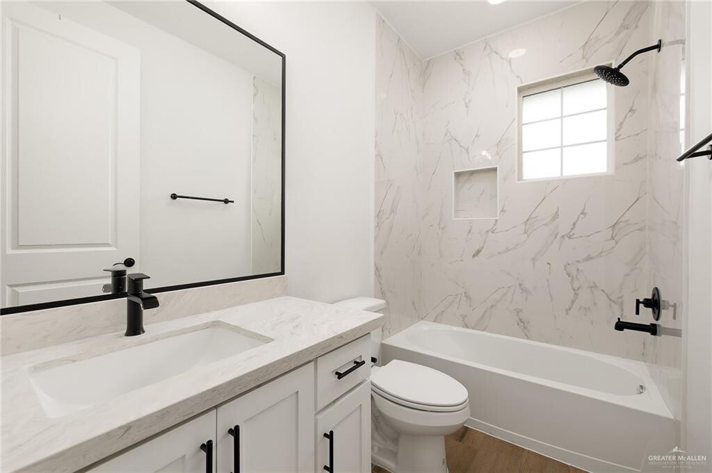 This amazing contemporary farmhouse blends the rustic charm of a traditional farmhouse with modern design elements,resulting in a home that's both cozy and sophisticated. With 3 bedrooms and 2.5 baths,this almost new home features clean lines,an open floor plan,and lots of light,bright spaces,while still incorporating natural materials like minimalistic wood shelving and rustic wood tile flooring throughout with matte black finishes on all the fixtures. Spacious laundry room has sink to handwash delicates,ample cabinets,countertops and connections for your washer and dryer.