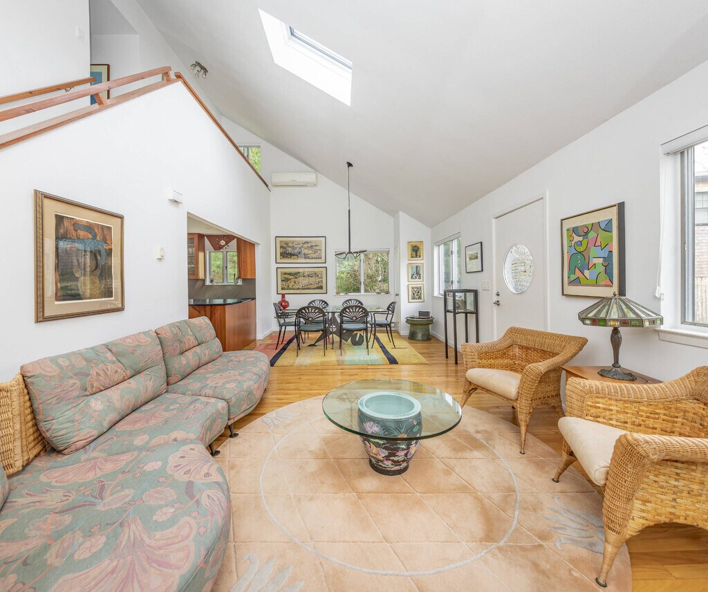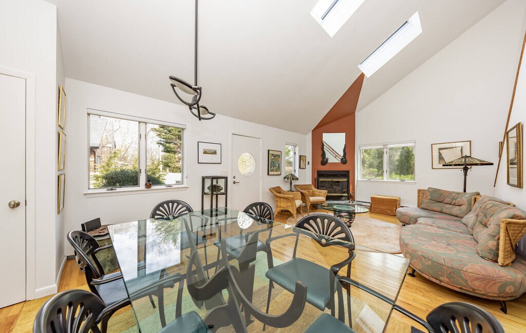 A gated entrance opens to vibrant, thoughtfully landscaped grounds that set the tone for a relaxed August retreat in East Hampton's Springs. The outdoor spaces are a true highlight-lush, private, and designed for easy summer living, with a hedged pool area and multiple areas for dining, gathering, or unwinding. Set within this setting, the timeless saltbox-style home offers a comfortable and flexible layout. The main living and dining area features a vaulted ceiling, creating a sense of openness while remaining grounded and livable. The kitchen is open and functional, with an adjacent breakfast area suited for casual mornings and everyday use opening out onto a deck overlooking the backyard. A first-floor bedroom and full bath add convenience for guests. Upstairs, a landing leads to two well-proportioned rooms, including a bedroom with a generous closet, along with a separate den or office that works particularly well for those needing a dedicated work-from-home space or an additional bedroom. A lower-level lounge provides a relaxed spot to end the day, complementing a home that places equal emphasis on its interior spaces and its connection to the outdoors. Pool area provides great opportunity for sunning and relaxing. Offered for August, this is a private and easy summer rental with a strong focus on outdoor living and everyday comfort. Rental Terms: August - Labor Day: $25,000