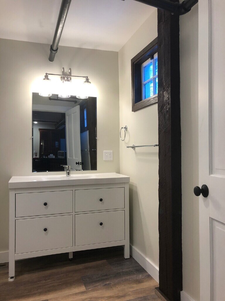 Newly renovated apartments in the historic barn of the Mill Pond Center. This open concept unit features today's modern conveniences and safety requirements while retaining the charm of the early 1900's barn. There is 1000 sf of living space with the option to enclose the bedroom in curtains (there are no walls for the bedroom - the curtains are the "walls'). High-quality cabinets with a cherry stain, exposed beams, lofted ceilings, and granite counters are just some of the design features. Heat is included! The bathroom features a huge walk-in shower, sleek over-sized vanity with 4 drawers of storage and waterproof plank flooring. Step out one of your entrances and enjoy the massive deck. Be sure to take advantage of the common areas as well - including coin-op laundry, walking trails, views, and access to the Mill Pond and Oyster River. Finally your tenancy includes access to the Lounge: A 400 sf space overlooking the property grounds - can be used casually as you wish or reserved upon request for small gatherings. Historical Perspective: Originally a tavern in the 17th century, the main house was moved to its current location in the early 1900's. At this point a gentleman farmer constructed a 5000 square foot barn. Over the years, the barn has seen farm activity before being converted into a performing arts center in the 1980's. This usage lasted until the mid-2000's when all usage ceased. Our renovation is now your gain! No Pets. Absolutely No Smoking.