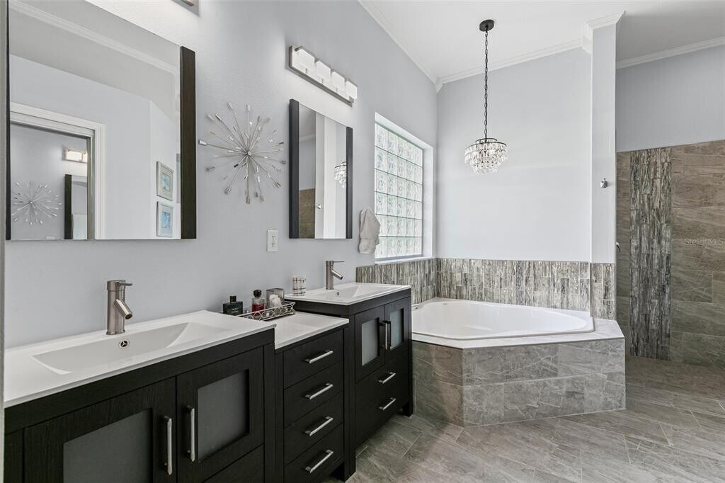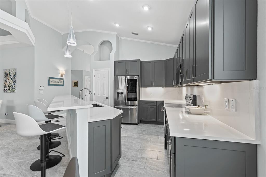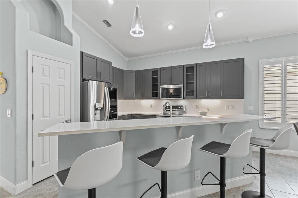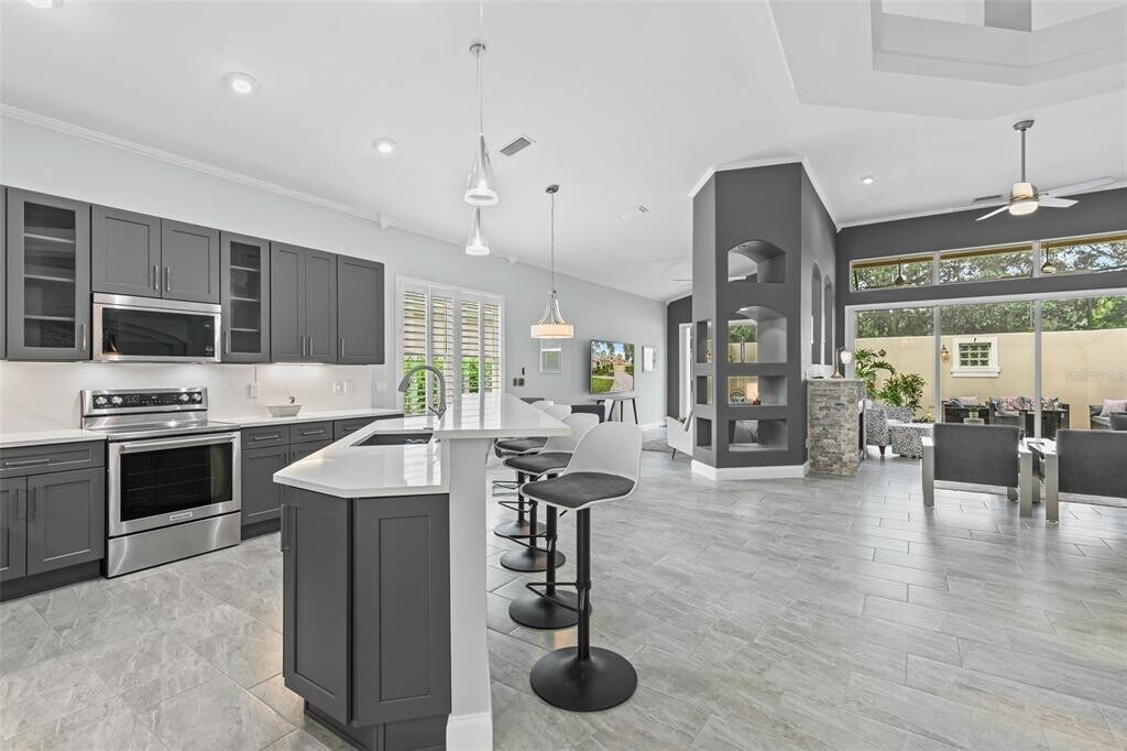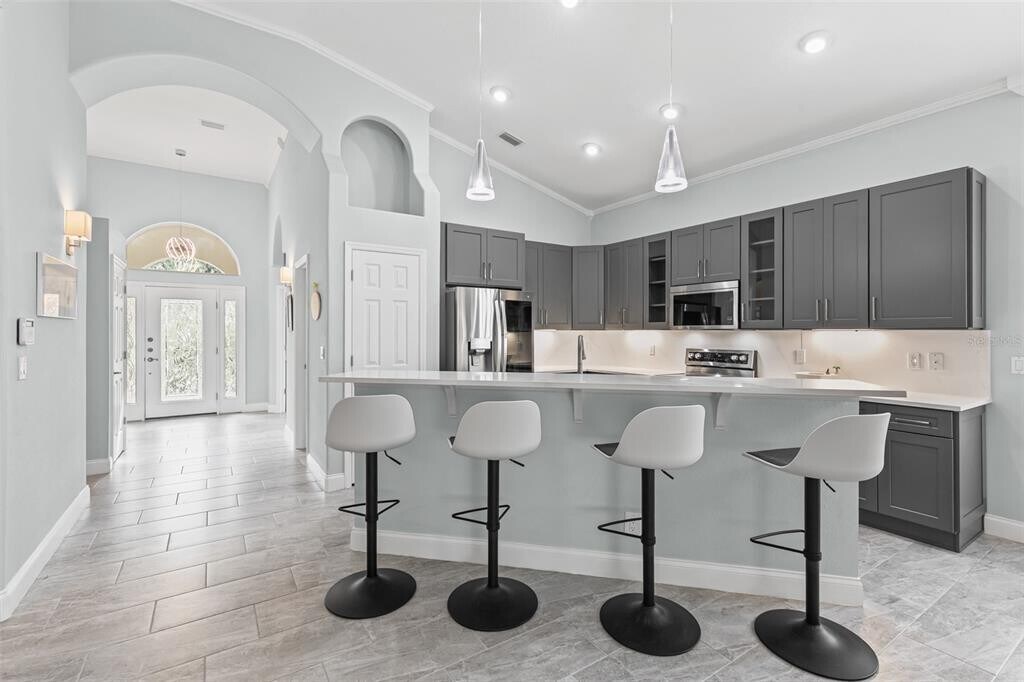 Looking for a fully renovated contemporary home in Grand Haven,this is it! This 3-bed 2-bath Mediterranean-style home with 2093 sq ft showcases a range of modern upgrades and timeless elegance for both comfort and style.Being enjoyed as a second home,with minimal use,maintains its pristine condition. Recent improvements in 2022 enhance the overall appeal and functionality of the home,ensuring a move-in-ready experience. The home features (2022) interior paint (walls,baseboards,doors,trim,and ceilings),sleek porcelain tile flooring throughout,upgraded light fixtures,chandeliers,and Hunter ceiling fans with remotes. The chef's kitchen is a showpiece,featuring a large island,quartz countertops and backsplash,shaker cabinetry,a quartz composite sink,new fixtures,and complemented by KitchenAid appliances (2024) electric stove,dishwasher,and microwave. LG refrigerator 2021 The living area centers around an attractive stone gas fireplace with a Quartz mantel-top. Both bathrooms boast new vanities,mirrors,fixtures,and toilets. The 3rd bedroom with French Doors was used as an office. The primary bedroom closet is enhanced with California Closets (2023). Additional updates include April (2022) Hot water heater,polyaspartic flooring in the garage,and lanai. The garage is also outfitted with California Closets cabinetry (2024). The a/c (2024) is a Trane high efficiency with a variable speed inverter and smart WIFI thermostat,and also 2024 exterior is freshly painted and pressure-washed. Grand Haven offers world-class amenities,including community pools,tennis,fitness center,dining,and an 18-hole Jack Nicklaus Signature golf course with clubhouse,pro shop,and restaurant. Membership is optional. Home also available for sale. ML#FC312523