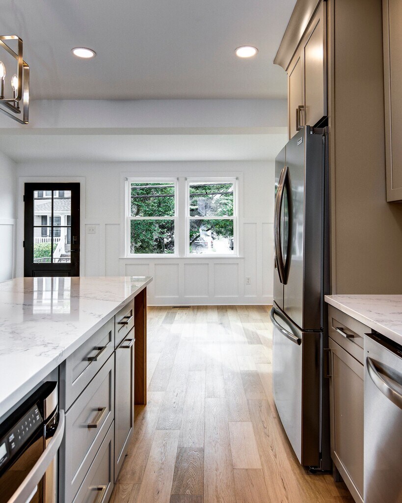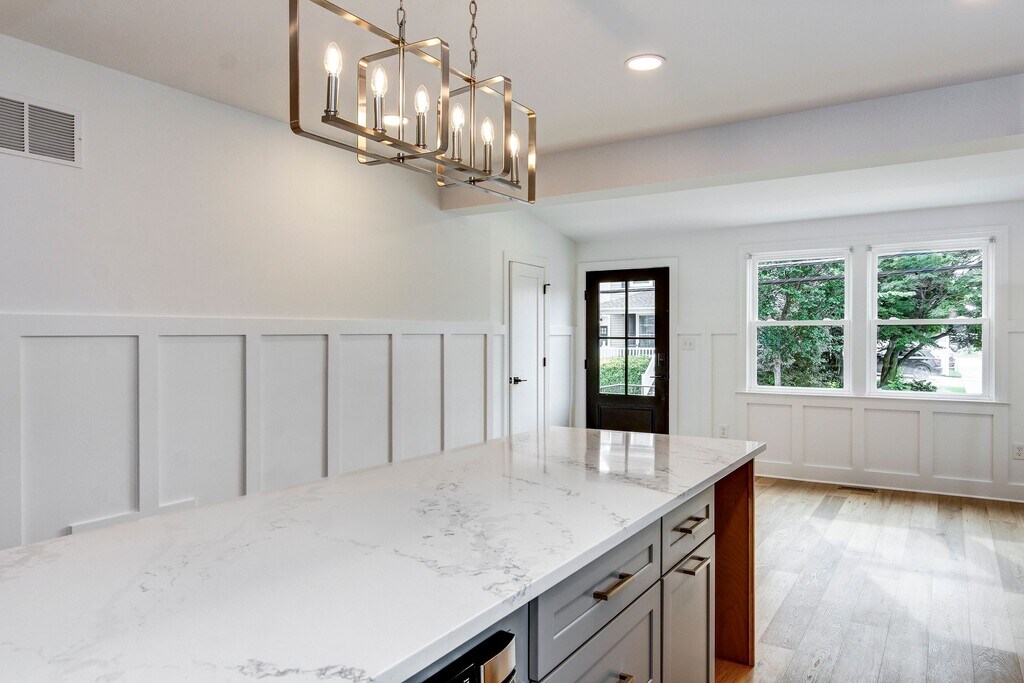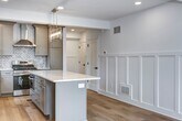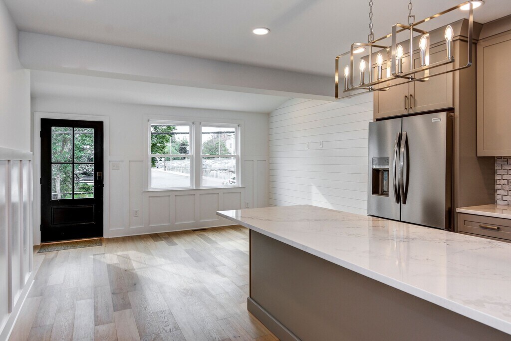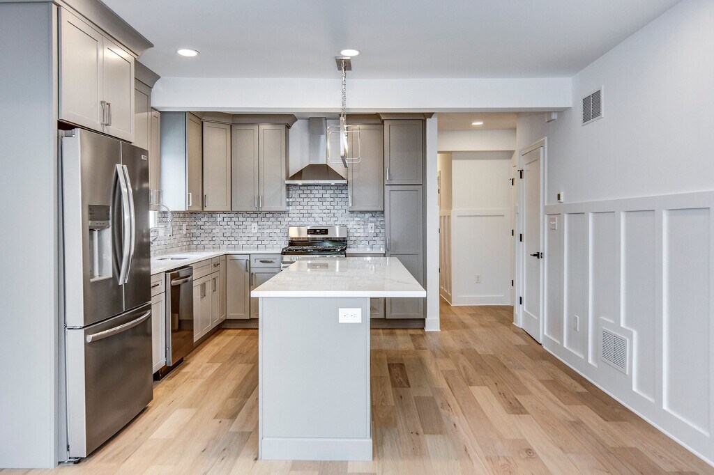 13 Wilkins Avenue, Haddonfield, NJ 08033 Step inside this completely renovated 2 bed, 1-1/2 bath unit in the heart of Haddonfield. The renovation boasts new roof, siding, electrical, plumbing, and landscaping. This first floor unit is highlighted by open concept living with the living room open to the gourmet kitchen with custom cabinetry, Quartz countertops, island seating, stainless steel appliances including wine refrigerator. Custom wall treatments lead you to a hall powder room and two bedrooms, primary features a walk in closet. Generously sized main bath and separate laundry closet. One car parking in driveway. If you commute to Philadelphia this unit is just a short walk to the Patco station. You will also appreciate the shops and restaurants up the street. ** Gas and water will be split between the first and second floor tenants