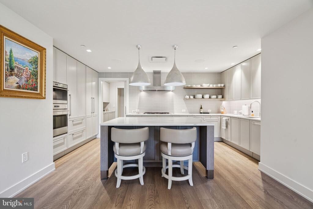 Beautiful custom rental overlooking Rittenhouse Square with all of the amenities and services of 10 Rittenhouse. This stunning full floor residence features hardwood floors, recessed lighting, an excellent floorplan and high quality finishes throughout. Enter the unit directly off of the secure elevator into a grand great room with high ceilings, oversized windows boasting Rittenhouse Square views, living and dining room, and open chef’s kitchen. There is a wet bar with wine fridge in the living room and designer built-ins in the dining room. The chef’s kitchen features modern cabinetry, marble countertops, a center island with breakfast bar, and high-end appliances including a Sub-Zero refrigerator; Wolf oven, microwave, and cooktop; and Miele dishwasher and hood. Off of the kitchen is a laundry room with built-in storage and Miele washer and dryer. The living space leads to a spacious primary suite with more oversized windows, his and hers walk-in closets with built-ins, and a marble appointed ensuite bathroom with double vanity, soaking tub, seamless glass shower, and water closet. There are two bedrooms both with floor-to-ceiling windows, great space, and ensuite bathrooms with high-end tilework and seamless glass showers. The fourth bedroom has a floor-to-ceiling bay window, barn door, and enjoys use of a full hall bathroom with gorgeous tilework and seamless glass shower. The Rittenhouse Club is a recently built, luxury rental building on the north side of Rittenhouse Square. With only three homes, this boutique building is one of the most exclusive addresses on Rittenhouse Square. The Rittenhouse Club redefines sophisticated residential living in Philadelphia. In keeping with the prestige of its Rittenhouse Square location, the residences were all designed by the renowned Joanne Hudson Associates and Stokes Architecture. Residents enjoy the same amenities and services as 10 Rittenhouse, including a 24 hour doorman (18th Street entrance), chauffeur driven Mercedes town car, 7-foot three lane indoor saline pool, fitness center, boardroom and full business center, chilled wine storage, catering kitchen, and use of a hospitality suite.