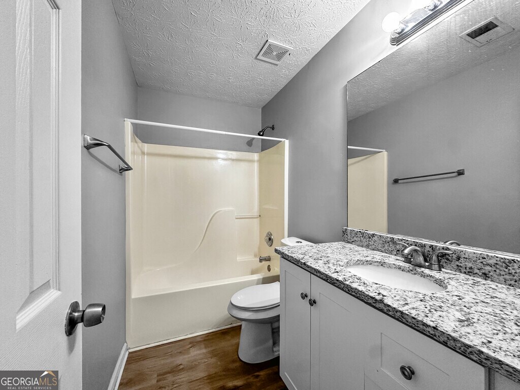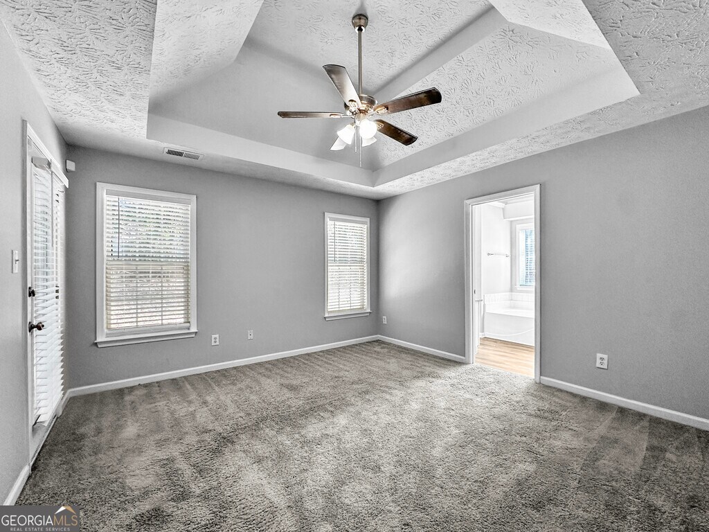 This beautiful 4 bedroom, 3 bathroom home offers 1,775 square feet of stylish living space filled with natural light and modern comfort. Step inside to discover wood-inspired flooring that flows seamlessly through the open living area and into the eat-in kitchen, creating a warm and inviting atmosphere. The kitchen is a chefs dream, featuring white cabinetry, granite countertops, and stainless steel appliances, including a refrigerator. The spacious primary suite is a relaxing retreat, complete with a tray ceiling, ceiling fan, and a luxurious bathroom boasting double sinks, a soaking tub, and a separate shower. Upstairs, youll find an additional bedroom with its own private bathroomperfect for guests, a home office, or a teen suite.