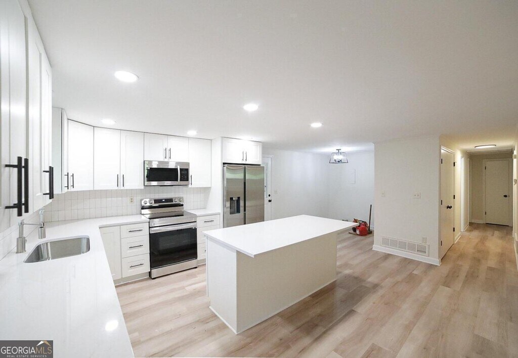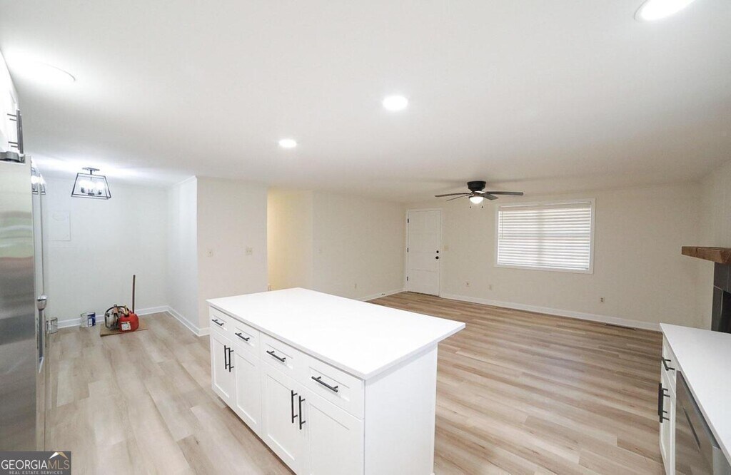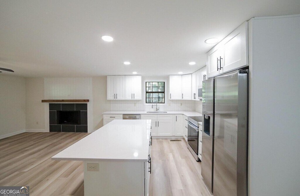 A rare find - Renovated rental opportunity in the heart of Watkinsville. Completely updated and like-new condition, this compelling home offers a breath of fresh air. Masterfully restored, desirable appointments expand throughout providing modern appeal, and just adds to its overall desirability. This easy-living ranch features a completely open floor plan maximizing all available space, adorned with durable luxury vinyl plank floors throughout, designers-choice paint palette, updated light fixtures and ceilings fans, and so much more. Welcomed into the spacious living room, your focus is quickly drawn to the sparkling kitchen and redesigned fireplace providing that pop of charm. Bright and full of light, the gourmet kitchen boasts refined appointments such as expansive quartz counters extending to the island with bar seating, custom white cabinets with sleek black hardware, gleaming subway tile backsplash, and complete stainless appliance package. For more formal dining, the kitchen lends space to the dining nook, providing a designated space to enjoy yummy meals. Grouped together down the right hallway are 3 bedrooms and 2 updated full baths. The bedrooms at the end of the hall are quite oversized, with each offering ample closet space, ceiling fan light fixtures and luxury vinyl plank floors. Standing out from the rest, the owners suite boasts an ensuite full bath complete with tiled shower accompanied by a glass door, and upgraded vanity. Encouraging outdoor living, enjoy time on the rear, open-air deck overlooking the fenced backyard. There is even a storage building to house your lawn equipment. This total package offers a superior in-town location, providing convenience to downtown Watkinsville, Butlers Crossing and Hwy. 441. Take advantage of this spectacular renovated rental opportunity today! ONE SMALL DOG MAYBE ALLOWED NO CATS