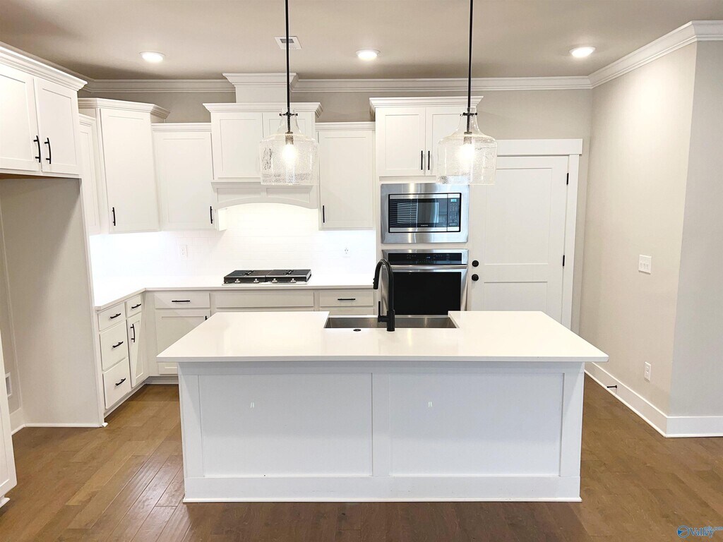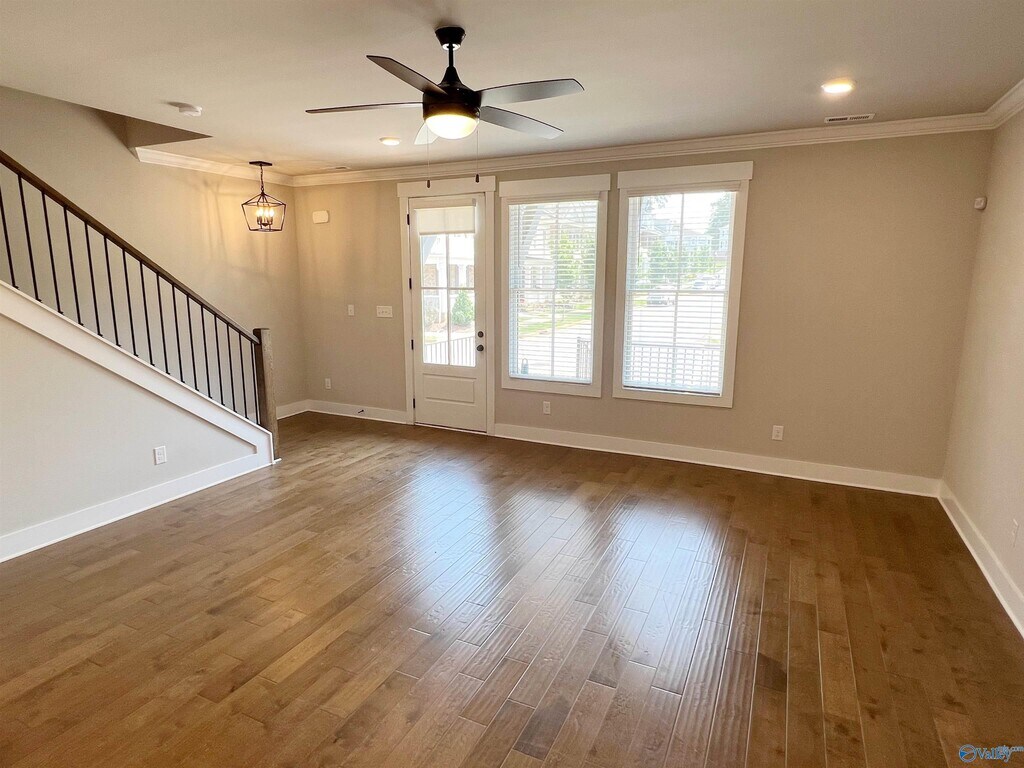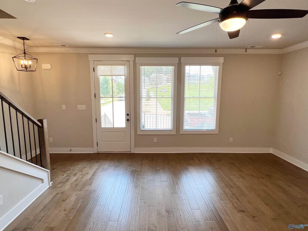 Welcome home to this beautiful,3 bed/2.5 bath townhome in the desirable TOWN MADISON neighborhood. This home offers a gourmet kitchen including a gas cooktop,quartz countertops,soft close cabinets and drawers,and stainless steel farmhouse sink. The towhnome boasts 9' ceilings,designer ceramic tile in bathrooms/laundry,and hardwoods in the greatroom,kitchen,and primary suite. Other amenities include a two car attached garage,refrigerator and on on suite balcony off the master. Town Madison is a sought after pool/gym community that is in walking distance to Toyota Field and many restaurants with quick access to Redstone Arsenal.