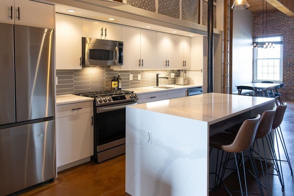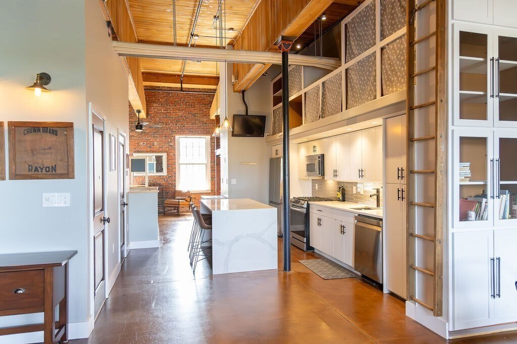 Loft Style apartment in the historic Bootts Mill. This corner unit features oversized mill-style windows on both ends of the expansive living space providing picturesque views of both the Merrimack River and mill architecture. Private primary bedroom off the foyer with full bath with tiled shower. Follow up industrial staircase to the studio second sleeping space,second bathroom with soaker tub off the living area. Two levels of soaring ceilings,original wooden beams,exposed pipes,and brick walls blend beautifully with polished concrete floors,granite countertops,plenty of cabinet space plus a bonus reading loft hideaway. Enjoy premium amenities including a fully-equipped fitness center,a rooftop lookout with panoramic views,lounge,game room and courtyard patio. No smoking. No pets. Flexible mid-month move-in possible. Message now to schedule your showing NOW! MLS# 73427731