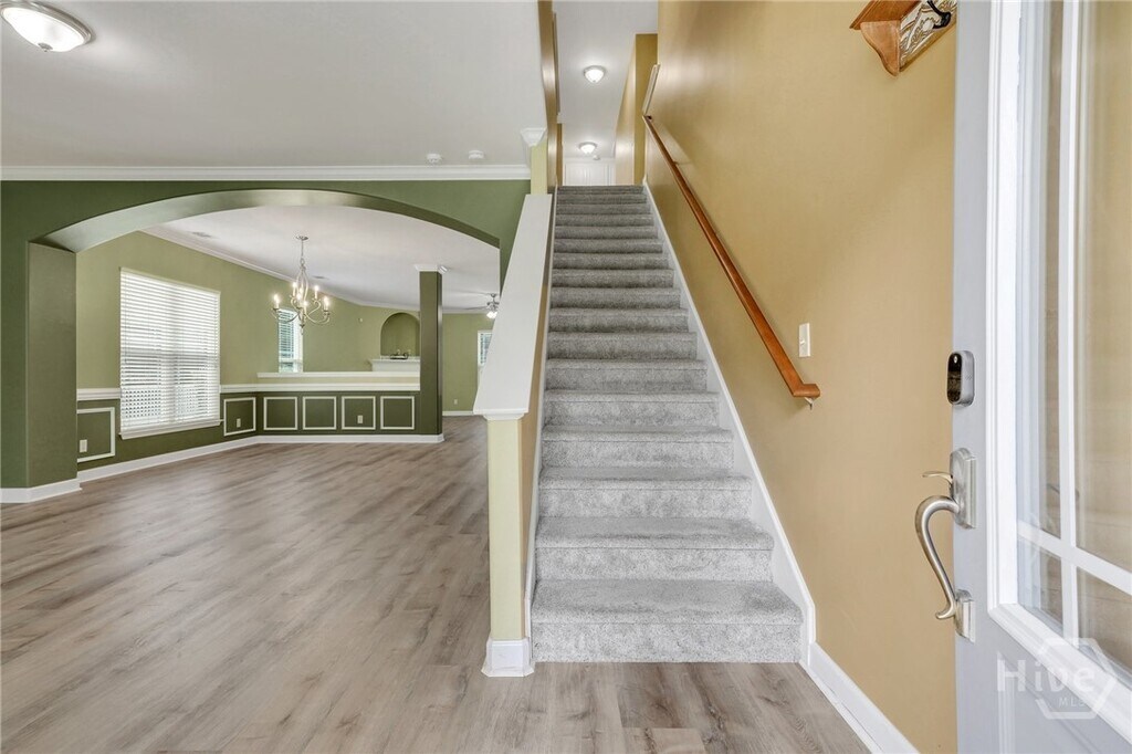 Extremely well maintained home in The Arbors! Through the front door,you're greeted with a huge formal living space that flows directly into the dining room,family room and into the kitchen with newer vinyl flooring throughout. Endless opportunities for this large,open concept floor plan downstairs! Kitchen is well appointed with an island,stainless steel appliances,and granite countertops. Perfectly placed half bath downstairs for guests to use across from the separate laundry room. Upstairs,there is a large loft with built-in bookcases and a large built-in workspace,perfect for working from home,home schooling or school projects. The primary suite has enough space for a king bed and then some! Also offers a beautifully renovated bathroom featuring double vanities,a large garden tub,separate shower,and separate closets. Large two car garage and a separate single car garage for the ultimate storage space. Close proximity to all shopping and restaurants Pooler has to offer!