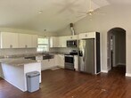 This charming 2-bedroom, 2-bath home offers a spacious open-concept layout perfect for comfortable living and a kitchen with stainless steel appliances. The primary suite features stylish barn doors leading to the ensuite bath, while the living room boasts a cozy fireplace for relaxing evenings. Enjoy a large front and backyard, ideal for entertaining, gardening, or children at play. The home sits on a quiet dead-end road that ends at the sound, offering a peaceful coastal atmosphere. Additional features include a garage for parking or extra storage.