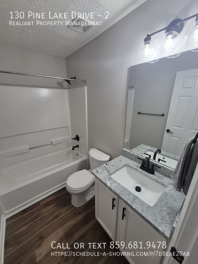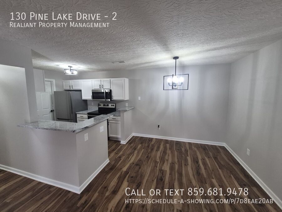 Welcome home to 130 Pine Lake Dr, Apt 2, Erlanger, KY 41018, located in the desirable Erlanger Lakes Condominiums community! This beautifully updated first-floor condo offers approximately 985–1,150 sq ft of comfortable living space with a thoughtful, modern layout. Interior Features: Completely remodeled throughout with fresh finishes 2 spacious bedrooms and 2 full bathrooms, both updated with granite countertops and modern fixtures Stylish updated kitchen featuring new granite countertops, refrigerator, electric stove, microwave, and dishwasher In-unit washer and dryer New flooring and carpet plus updated lighting fixtures for a bright, contemporary feel Cozy patio/porch perfect for relaxing outdoors Additional Details: First-floor unit for easy access On-street parking (no garage) Convenient location near dining, shopping, parks, and major highways This move-in-ready condo offers comfort, convenience, and modern upgrades throughout—perfect for anyone seeking a clean, updated home in a peaceful community. All interested applicants over the age of 18 must complete a rental application and authorize a $65 credit and background check. A minimum credit score of 600 is required. No pets allowed. Schedule your showing today at Rentals--Northern, Ky. *Beware of Scams! We will never ask you to send money via Venmo, CashApp, PayPal, Zelle, or any other peer-to-peer payment app. All payments are handled securely through our verified platforms. We DO NOT ACCEPT CASH.* Water Sewer Trash
