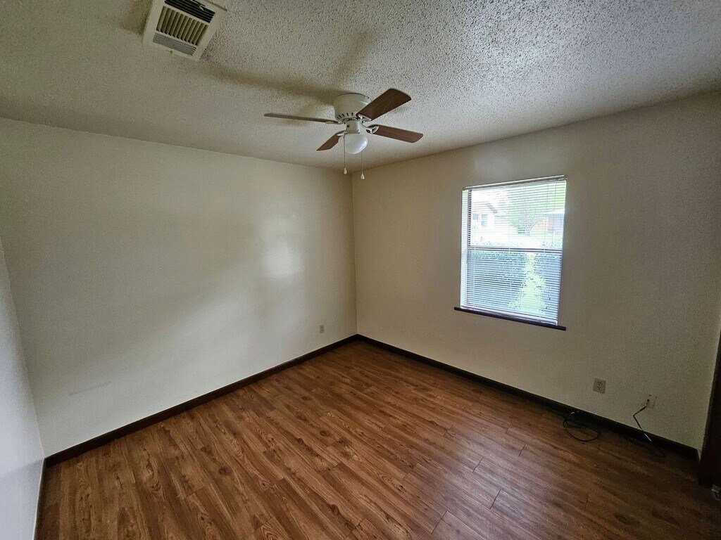 This 3-bedroom, 2-bath brick ranch-style home offers around 1,400 square feet and is located in the quiet community of New Llano, just minutes from Leesville and about a 10-minute drive to the Fort Polk main gate. Inside, the home features wood flooring throughout and a layout that connects the main living spaces. The dining area sits just off the kitchen and opens into the living room, where a brick fireplace adds a central focal point. French doors lead out to the back patio, bringing in natural light and providing easy access to the backyard. The kitchen is conveniently positioned off the dining area, and the home also includes a dedicated laundry room. The primary bedroom offers a walk-in closet and a private full bathroom. Two additional bedrooms share a second full bath with a tub/shower combination. Outside, the home includes a carport and a large backyard with space to enjoy the outdoors. With its simple layout and location in a quieter area, this home offers a comfortable setting while still being close to town. Pet friendly.