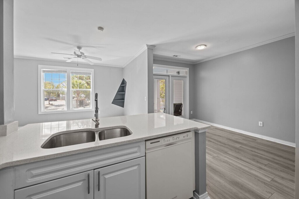Welcome to 130 River Landing Drive, Unit 9203—an elegant second-floor condominium ideally located in the heart of beautiful Daniel Island. This spacious and light-filled home offers the perfect blend of Lowcountry charm and modern convenience, creating a lifestyle of comfort, relaxation, and easy access to everything that makes Daniel Island one of Charleston's most desirable communities. Step inside to discover an open-concept living and dining area featuring luxury vinyl plank flooring, tall ceilings, and large windows that flood the space with natural light. The kitchen is thoughtfully designed with bar seating, ample cabinetry, and modern appliances—perfect for enjoying casual meals or entertaining friends. The private balcony overlooks lush landscaping and provides a tranquil retreat for your morning coffee or evening unwind. The primary bedroom suite offers generous space with a large walk-in closet and a well-appointed bathroom. A separate laundry room with full-size washer and dryer adds extra convenience. The condo is part of Daniel Island's vibrant River Landing community, where residents enjoy access to resort-style amenities including a sparkling pool, clubhouse, fitness center, walking trails, and beautifully maintained green spaces. You'll love the short stroll or quick golf-cart ride to Daniel Island's restaurants, shops, and waterfront paths along the Wando River. Concerts and events at Credit One Stadium are nearby, along with scenic parks and world-class tennis facilities. With easy access to I-526, you're minutes from Mount Pleasant, Charleston International Airport, and historic downtown Charleston. This property offers the perfect combination of upscale island living, convenience, and community.