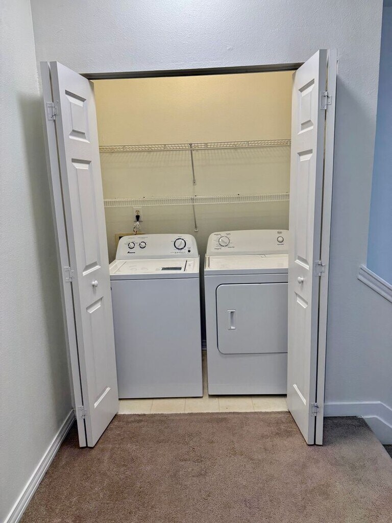 Experience island living in this stunning two story, 2 bedroom, 2 bath condo on Daniel Island! The first floor features laminate flooring, an open kitchen, a full pantry, and a bar-top overlooking the bright family and dining areas. Step out to a large balcony with serene Angel Oak views and extra storage. Upstairs, enjoy a spacious primary suite with a private bath and dual closets, plus a second bedroom, bath, and laundry (washer/dryer included). Community perks include a resort-style pool with jacuzzi, clubhouse, fitness and business centers, trails, and more — just steps from shops, dining, Volvo Stadium, and The Waterfront. Pets negotiable with a max of 2 (HOA requirement). Water, sewer, washer & dryer included!