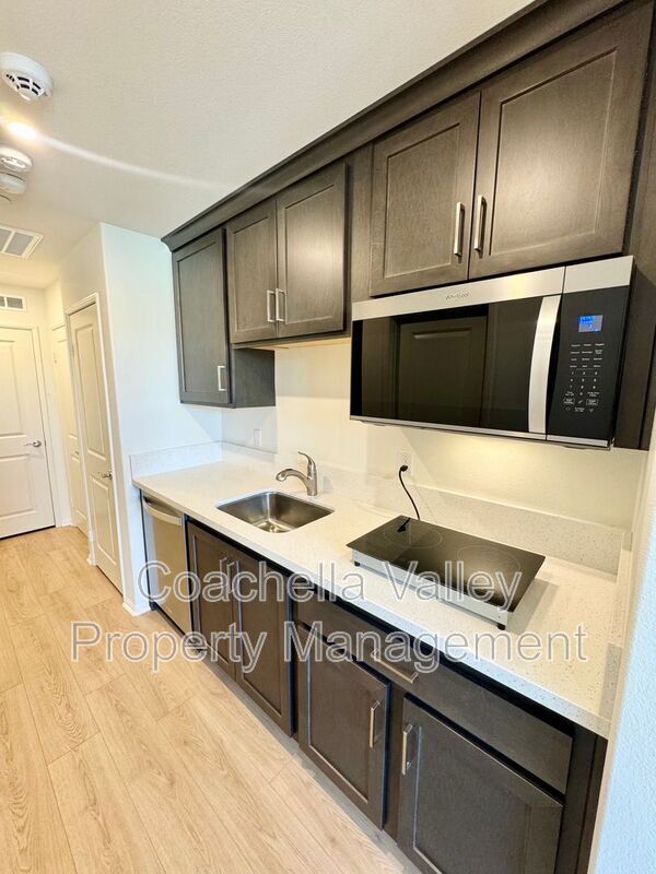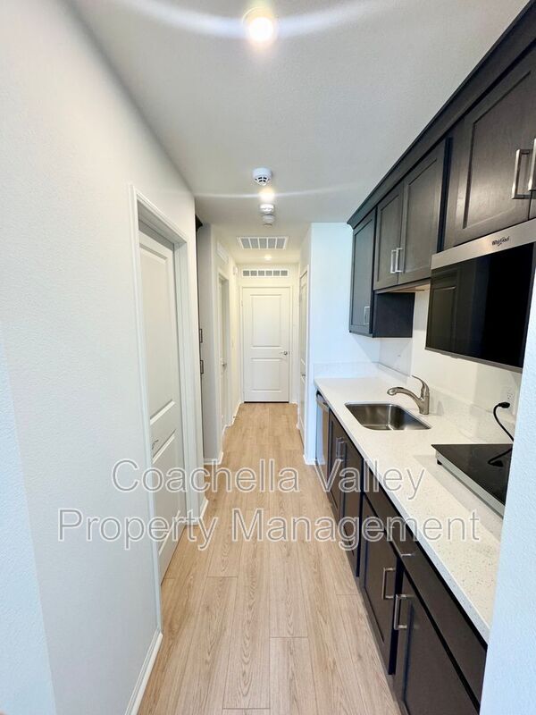 Welcome home to this brand-new, turnkey casita located in the highly desirable The Collection at Campanile community in beautiful Cathedral City. This spacious and thoughtfully designed unit offers a large living area accented by elegant laminate vinyl plank flooring, creating a modern yet warm atmosphere perfect for relaxing or entertaining. The well-appointed kitchenette features a mini-fridge, cooktop, sink, and microwave, along with ample cabinet and storage space to keep everything organized and within reach. The sleek and spacious bathroom offers a full bathtub and shower combination with contemporary finishes. The large bedroom is filled with natural light and provides generous closet space, along with the added convenience of two separate entrances. One entrance opens to a private patio area, beautifully enclosed with lush ferns, creating a peaceful outdoor retreat ideal for enjoying your morning coffee or unwinding in the evening. A state-of-the-art washer and dryer are also included, adding to the everyday convenience of this exceptional home. One of the most attractive features of this casita is that all utilities—electricity, water, trash, and high-speed internet—are included in the rent, making for effortless and predictable monthly living expenses. Residents of this gated community enjoy access to resort-style pools and spas, scenic walking paths, parks, and the security and comfort of a beautifully maintained neighborhood. This is a wonderful opportunity to live stylishly and comfortably in a brand-new home within one of Cathedral City’s most inviting communities. *Please note that additional fees may apply, including but not limited to an application fee, setup fee, and administration fee. Additionally, some units may incur extra rental costs, which could encompass pet rent, appliance rent, and credit remediation rent charges.* ** If you see this home advertised online for less than the rental amount quoted here, the ad is a SCAM. We are the only authorized agent for this property. Please email us a link to any bogus or fraudulent ads so we can report it to the appropriate authorities. Please do NOT send money to anyone who offers keys in exchange for a deposit check - especially if they are out of state. When in doubt, please feel free to contact us. ** Amenities: refrigerator, washer/dryer, close to restaurants, close to shopping, close to park, close to schools, close to freeway