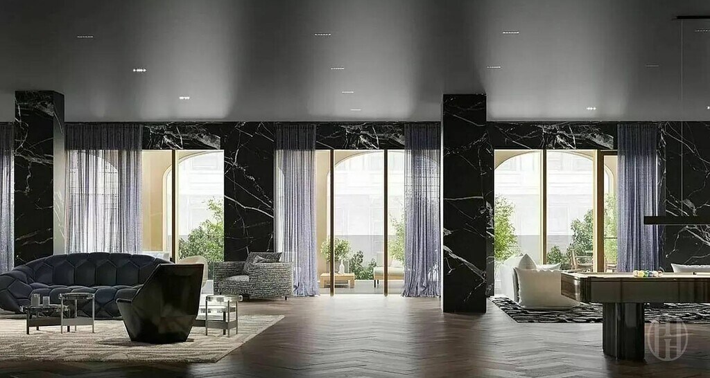 As the epicenter of arts, architectural enchantments and dining destinations, New York City wears many crowns and this property, designed by award-winning visionary architect Sir David Adjaye, is one of them. Residence 16A is a studio home offering a layout rich in space with soaring ceilings for added luxury. The decadent setting is enhanced by the oversized arched windows with elegant bronze detailing throughout. Upon entry you are greeted by wide-plank, white oak flooring that flows underfoot, leading you to the open kitchen where the home chef can immerse themselves in custom Pedini Italian textured blackened oak cabinetry, Salvatori Pietra Cardosa marble countertops, a backsplash hand-selected from the Apuan Alps in Tuscany and finished indulgently with state-of-the-art Gaggenau and Bosch appliances. The equally lavish bathroom offers a place of sanctuary to unwind from a busy day, with Italian marble and radiant heated floors. Residents have access to a host of lifestyle and w