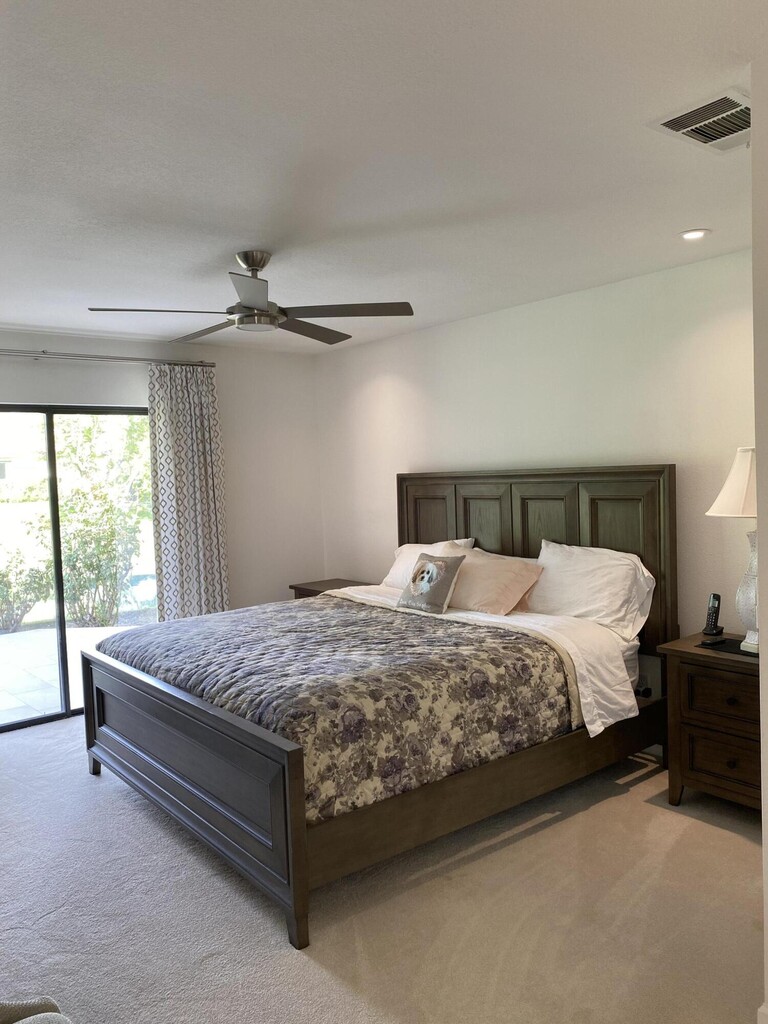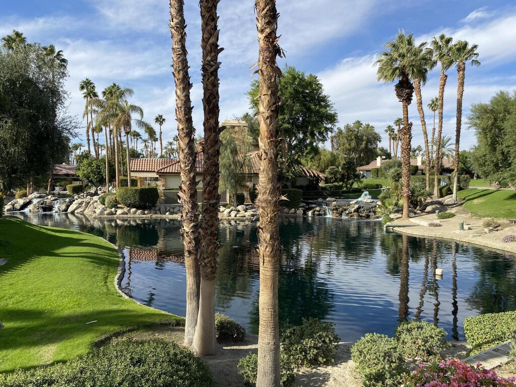 North patio views overlooking a green belt,lake,and San Jacinto Mountain range to the west. Modern bright condo renovated throughout including kitchen cabinets,counter tops,stainless appliances,hardware fixtures,bathroom vanities,shower enclosures,flooring,window treatments,recessed lighting,paint,upgraded furniture. Great room includes Living area,Dining area,Breakfast bar,Entertainment center,Fireplace and Wet bar opening to Patio. Primary Bedroom access to outdoor Patio includes private Bathroom ensuite,glass shower enclosure,walk-in closet. Guest bedroom with adjoining hallway Guest Bathroom completes the main floor. A private gated courtyard provides access to front entry door and attached two car garage. Park Palms is centrally located with private Club House,Pool/Spa,Tennis located within blocks to El Paseo Shopping District,Restaurants,Art Galleries,McCallum Live Theater,public Golf course,Living Desert Zoo,Casinos,Acrisure Arena-professional Ice Hockey/major Concerts,Indian Wells Tennis/BNP Paribas,access to #10 FWY and the Palm Springs Int'l Airport all for your ease of access to valley amenities and your entertainment pleasure. Vacation Rental Rates: January-April $4,500 November-December $3,500,May-October $3,000 per month.