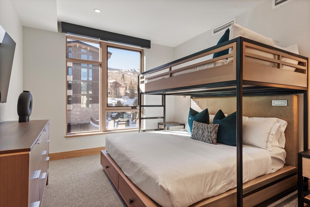 At the center of Snowmass Village, location is everything when it comes to Assay Hill. As a guest in residence, you'll have access to direct ski access, on-site pool and hot tub, valet parking and complimentary hot chocolate in the lobby upon check-in. Floor-to-ceiling windows and an open floor plan provide a light and bright living area. With a Wolf range and Meile appliances, the fully equipped kitchen with adjacent in-suite laundry makes every guest feel at home. The primary suite enjoys its own private deck and en suite bathroom. With two guest bedrooms—one with two queens and the other with a king/twin bunk bed—this residence sleeps up to 7 people. Enjoy effortless ski access and practically endless amenities from this newly built, three-bedroom, three-bathroom residence at Assay Hill on Snowmass Mountain. World-class dining at Toro restaurant, a day of relaxation at the spa and a state-of-the-art gym are just a few of the amenities at your fingertips. STR# 056058