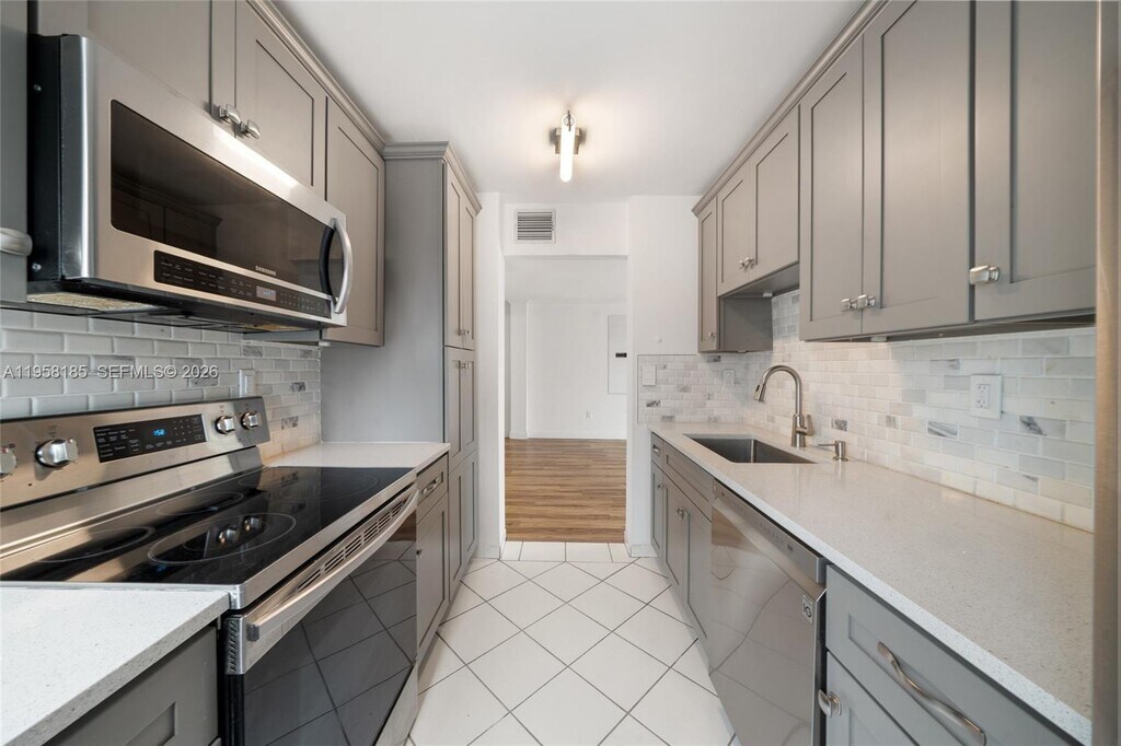This beautifully remodeled 2-bedroom, 1.5-bathroom home offers modern elegance with a relaxed, beach-inspired atmosphere. The residence features an updated kitchen with quartz countertops and stainless steel appliances, wood floors throughout, tastefully updated modern bathroomsand custom finished closets for elevated comfort. Hurricane impact windows and doors provide security and peace of mind. Additional highlights, elevator access, and one assigned parking space plus guest parking. The building offers a resort-style swimming pool. Perfectly situated near Whole Foods, acclaimed restaurants, and just 7 minutes from the beach, this home delivers a polished and effortless Miami Beach lifestyle. MLS # A11958185