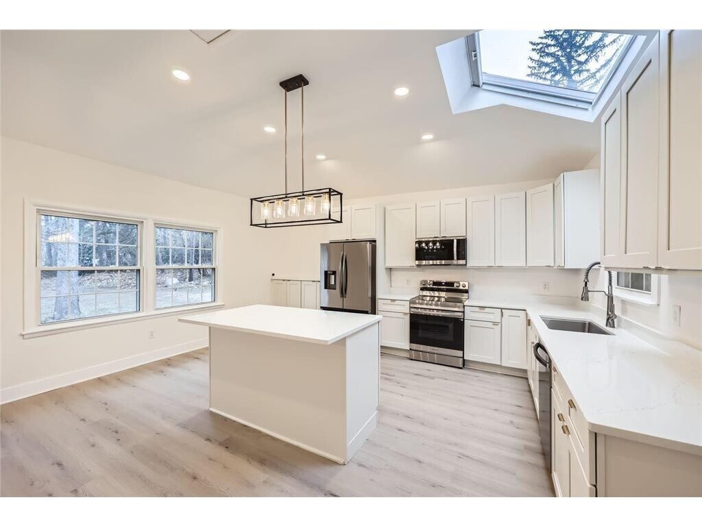 Fantastic Two Story home that has been fully remodeled throughout the years! High demand Orono school district! Nestled on a 2 acre lot with a creek. This stunning home boasts 4 bedrooms, 3 baths, and a 4-car garage (including a bonus amusement room). Positioned on a quiet neighborhood the home showcases an inviting facade and meticulous updates throughout. Custom built kitchen, white shaker cabinets, quartz counters/backsplash and stainless steel appliances. The main floor features a sitting room, spacious dining room area, and cozy living/family room, main level primary suite complemented by a glass solarium overlooking the backyard creek. Charming screened porch/mudroom. Upstairs, discover 3 spacious beds & 2 baths and a secondary primary suite. Remodeled baths- floor to ceiling tiles and vanities. Outside enjoy the vast picturesque backyard. Near Springhill Golf Course, Long Lake, Wolsfeld Woods. Convenient location and easy access! This opportunity does not come very often.