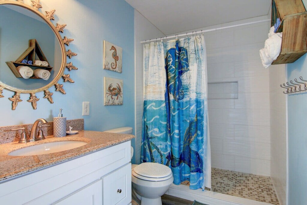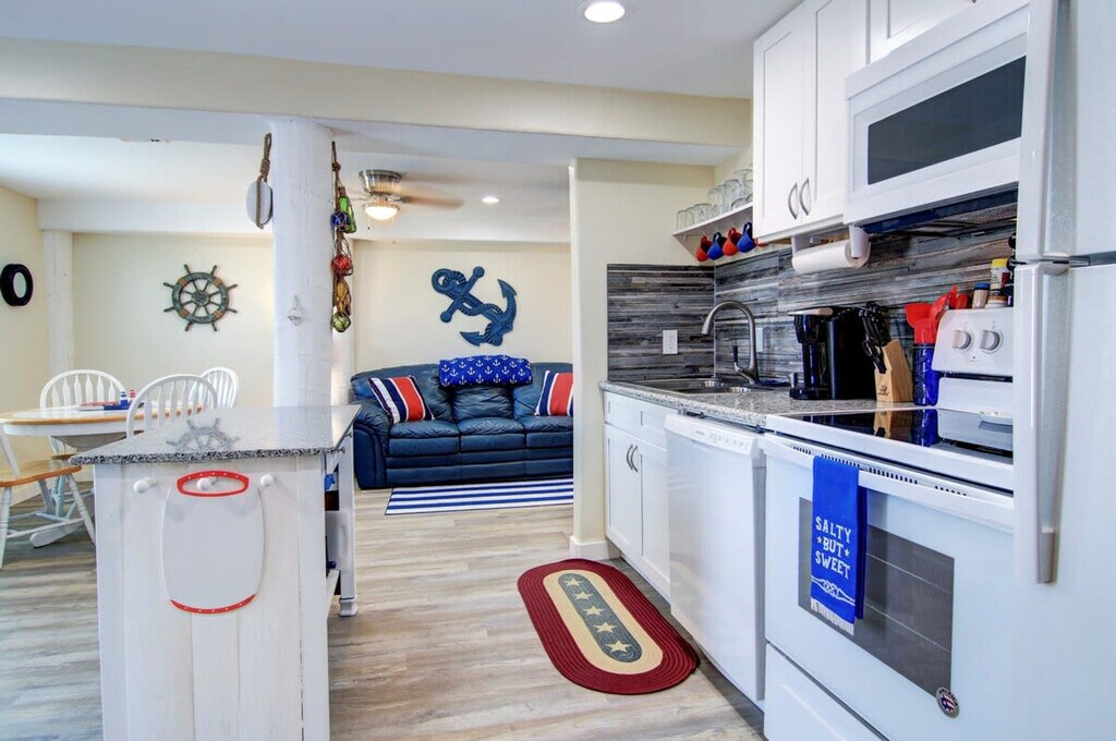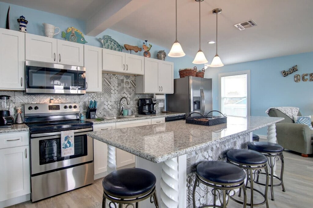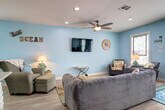The advertised rate of $9,562/month is the lowest available price, based on a 30 day(s) stay with a move-in date of March 23, 2026. Rates vary depending on the duration of stay, season, and other parameters. For exact pricing and additional pricing components, please visit our website and enter your desired move-in and move-out dates. The rate is applicable when billed upfront; it can be higher if billed in multiple payments. Feel at home in The Nauti Mermaid, a 5-bedroom home in a prime location in Port Aransas, TX. This reconstructed home offers spacious accommodations designed to make your stay unforgettable. Outdoor stairs are required to access the downstairs area. The Nauti Mermaid features separate living areas on each floor, along with fully equipped kitchens on both levels. The kitchens are fully stocked with full-size appliances, ample cabinetry and a pantry, a large refrigerator, a large island with seating, a Keurig and drip coffee maker, a coffee bar, and a large dining table. There are smart TVs in all rooms, wireless internet access, and a private washer and dryer. For entertainment, enjoy indoor games like board games and card games, and outdoor games like corn hole. Outside, there is a charcoal grill, outdoor seating and dining, and an outdoor shower. Limited parking is available for up to 5 vehicles, and boat parking is available for smaller bay boats with notification to the office when booking. This home is dog-friendly. Nestled on 11th Street in the heart of Port Aransas, The Nauti Mermaid is a short walk away from Port Aransas Beach. Nearby attractions include the Leonabelle Turnbull Birding Center, the University of Texas Marine Science Institute, Roberts Point Park, the Port Aransas Nature Preserve, Mustang Island State Park, Fisherman’s Wharf, The Port Aransas Museum, and dolphin watching tours. Explore unique boutiques and enjoy fresh seafood at nearby eateries such as Tortuga's Saltwater Grill, FINS Grill and Icehouse, Virginia's On The Bay, Jay’s Seafood & Spaghetti Works, and MacDaddy’s Family Kitchen. No parties are allowed, and violations may result in immediate termination of the stay. Quiet hours are between 10 PM and 7 AM per city ordinance. Smoking and/or vaping is not allowed inside or outside this property, and evidence of smoking will result in a $500 charge. A maximum of two pets are permitted, and they may not exceed 50 pounds in weight. Since you are on an island, there may be a lot of mosquitoes and other pests at certain seasons of the year. A professional pest control agency treats our properties every month. [SI]