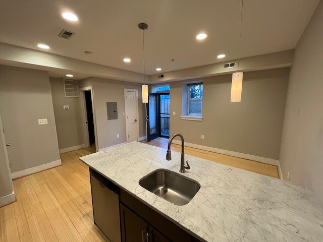 Lovely 1 Bed/1 Bath Unit w/Parking and Patio Available Now! This charming one bedroom one bathroom apartment is centrally located between U St and Columbia Heights, one of the most popular neighborhoods in Washington DC. You'll be struck by the character and style of this beautiful 1900 former mansion. A cozy private patio sits in front of the entry to your new apartment. Enter to high ceilings and an open plan living room, split by a large center island with Italian marble countertops. The remodeled gourmet kitchen features stainless steel appliances, plenty of counter space and lots of storage. The bedroom sits in the turret of this unique building with fantastic light and a large closet. The spa-inspired finishes in the bathroom make this an impeccable rental offering. Commuting was never easier with the Columbia Heights Metro and The U St Station each 10 minutes away. Adjacent bus lines include the 52, 54, 59, 63, and 64. The apartment comes with a spacious off-street parking spot, so you'll never be circling the block looking for parking. U ST And Columbia Heights will leave you spoiled for choice deciding which of DC's premier restaurants, bars or music venues to attend. There is a $50 application fee per applicant. The minimum lease term is for one year. The required security deposit is equal to one full month's rent. The minimum credit score requirement is 670 (per DC statute, the approval decision is not based solely on the credit score). Water included in rent, tenant pays electricity, cable, internet. Tenant responsible for a $50 move-in fee. Pets accepted on a case-by-case basis with a one-time non-refundable pet fee of $300. Smoking is not permitted This rental unit is professionally managed by Scout Properties, DC's trustworthy property management firm, located in the Brookland neighborhood of Washington, DC. For more information visit: or call . Scout Properties follows Equal Opportunity Housing guidelines, and Federal/ DC laws, which include voucher assistance and “source of income” protected classes.