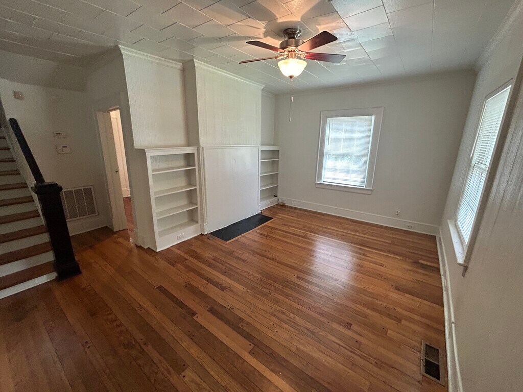 Spacious and full of charm, this classic two-story home offers four bedrooms plus an office, perfect for living, studying, or working from home. Features include hardwood floors, large windows, built-ins, and a bright kitchen with vintage tile. Enjoy a wide front porch, shaded yard, ample parking, and detached garage. Washer/dryer included. Steps from Duke East Campus, Ninth Street, and Downtown Durham.