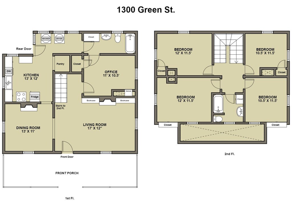 There is currently a 4 Bed 2 Bath Home for rent with 1,633 sq ft listed at 1300 Green St. It is Available January 1, 2026.