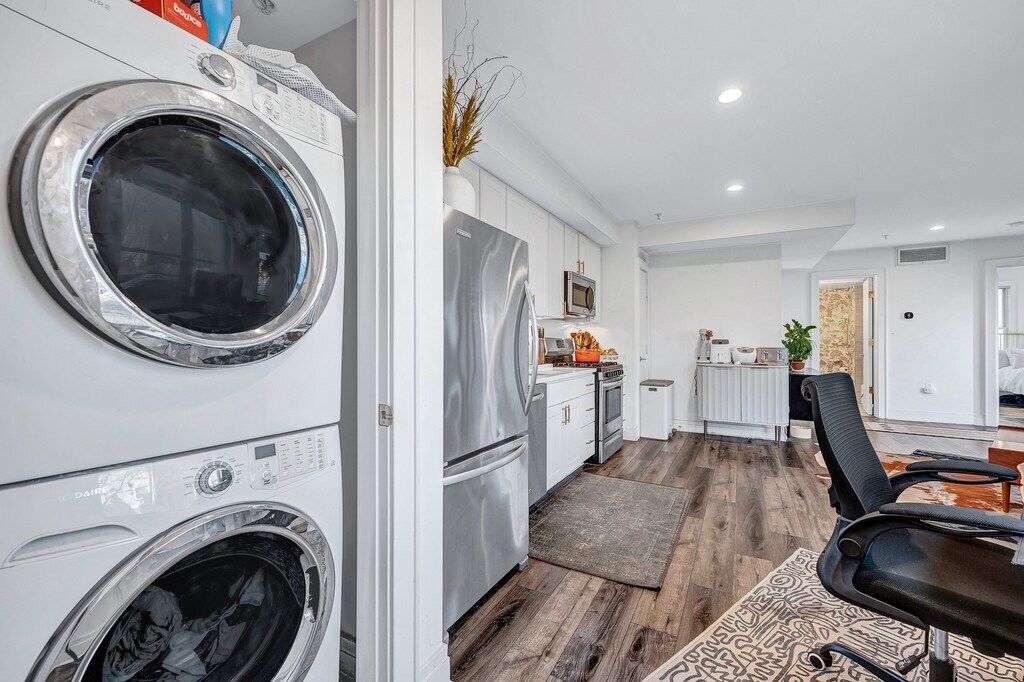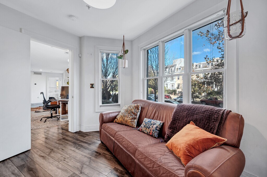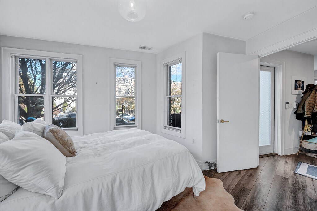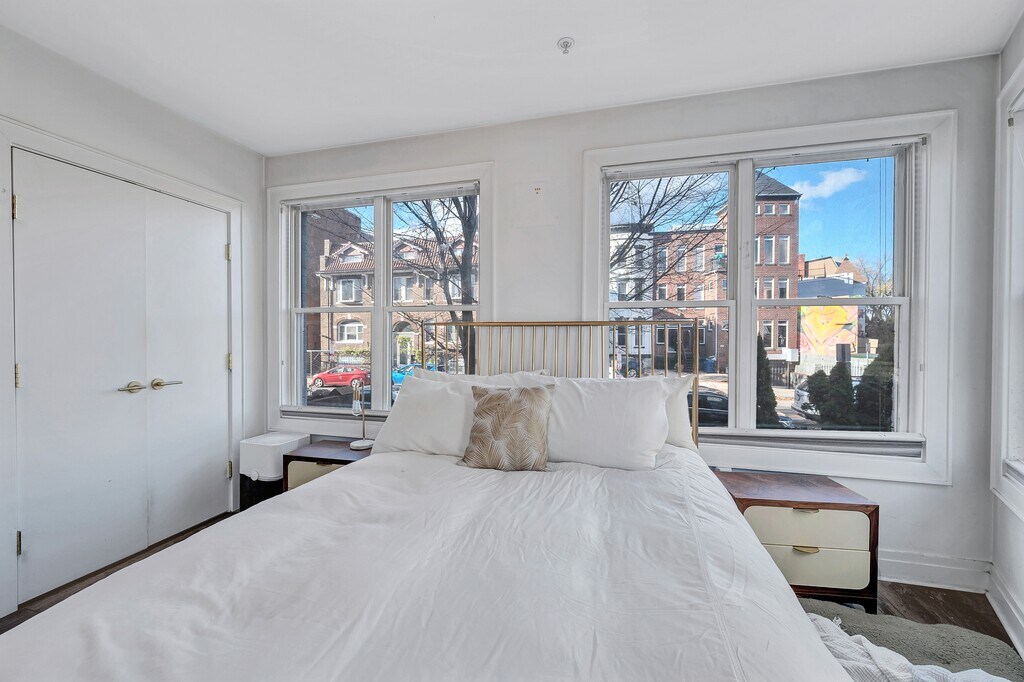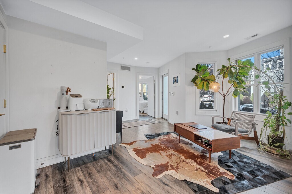 This contemporary and spacious condo features its own separate entrance, private patio and garden, with walls of windows that fill every room with ample natural light. This open unit boasts wide planked floors and recessed lighting with thoughtful updates like bespoke brass hardware throughout. The gourmet kitchen provides plenty of cabinet storage, gas cooking, granite counter tops, and stainless steel appliances. The bedrooms are roommate styled for maximum privacy and substantial in size. Full-size washer/dryer in the unit makes everyday living a breeze! The location is impossible to beat with a walk score of 96 – Columbia Heights Metro, grocery stores, shopping, dining, nightlife, you name it – it's around the corner!