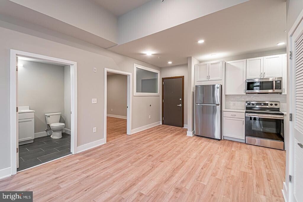 *Available NOW!* One of only Two 2BD Units in the building! Located in the basement level of the building, this unit has soaring high ceilings with three oversized windows that illuminates the open floor plan living room and kitchen. The washer/dryer and a deep coat closet are also located in the living room. The bright white kitchen features texted white subway tiles with white quartz counter tops and complete stainless steel appliance package. The hallway bathroom has a modern tiled shower/tub and vanity that matches the kitchen. The first bedroom includes a large closet and en-suite bathroom with a shower and similar design to the hall bathroom. On the other side of the living room is the second bedroom, just a few steps down, and features a unique vaulted ceiling and large closet. The Walter George Smith Public School, listed on the National Register of Historic Places, has undergone an amazing transformation to bring you these brand new luxury apartments! Each unit features high end finishes while preserving it’s historic character such as the chalkboards, original trim and closets, and overall unique floor plan. All tenants will have access to the two outdoor spaces (over half an acre combined!) on ground floor and mezzanine patios, and roof deck with stellar skyline views! Located at 19th and Wharton in Point Breeze, you’ll be minutes from the OCF Coffee House, American Sardine Bar, Graduate Hospital, East Passyunk and MORE! Lease Terms: Generally, 1st month, and 1 month security deposit due at, or prior to, lease signing. Other terms may be required by Landlord such as last month’s rent upfront. $65 application fee per applicant. Residents Responsible for Electric Usage & Flat Monthly Water/AC/Heat fee of $100. Additional fees or requirements may be applicable for units with Homeowners or Condo Associations. Landlord Requirements: Applicants to make 3x the monthly rent in verifiable gross income, credit history to be considered, no evictions within the past 5 years, and must have a verifiable rental history with on-time rental payments. Exceptions to this criteria may exist under the law and will be considered. Cosigners will be considered. *Price reflects the net effective rent when a 1-month credit is applied at $1,740/mo. *Sorry, no cats *1 dog <45 lbs permitted with owner approval + $50/mo pet fee *Resident responsible for electric and $100/mo flat fee for water + heating/cooling