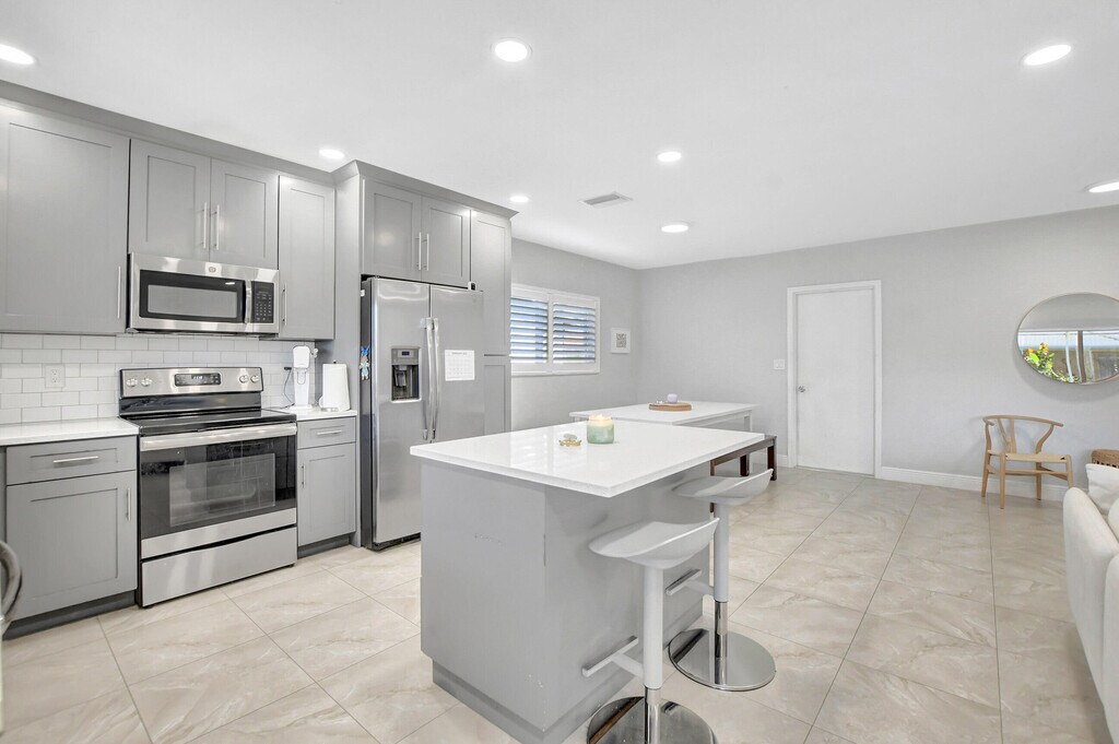 Totally Renovated Home ~ All new kitchen & stainless steel appliances ~ New bathrooms ~ All new tile flooring throughout ~ All new hurricane impact windows & doors ~ Master bedroom has walk-in closet & cabana bathroom~ Lrg linen closet~ Roof replaced July 2019, Screened pool & large patio with southern exposure~ Lg 2 Car Garage~ New washer/dryer~ Recently painted inside & outside ~ Home is move-in-ready! Shows Beautiful! All ''A'' Rated Schools, ~ Desirable East Boca location, Close to shopping, restaurants, Major highways, Downtown Boca! Close proximity to parks include Sugar Sand Park, the new El Rio Park, Bike to Beach, Pets Welcome, Lawn & Pool service included, Shows Beautiful! **All New Plantation Shutters have been installed but do not show in photos.