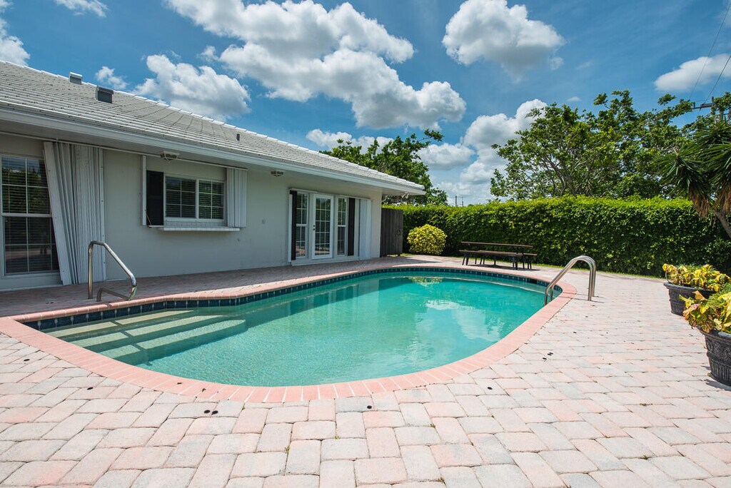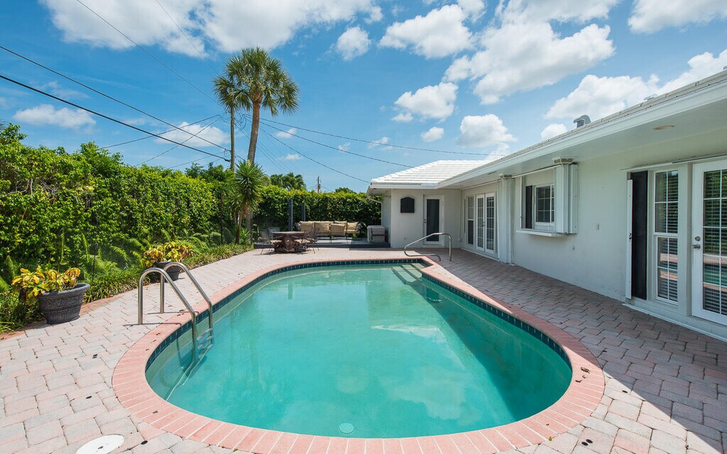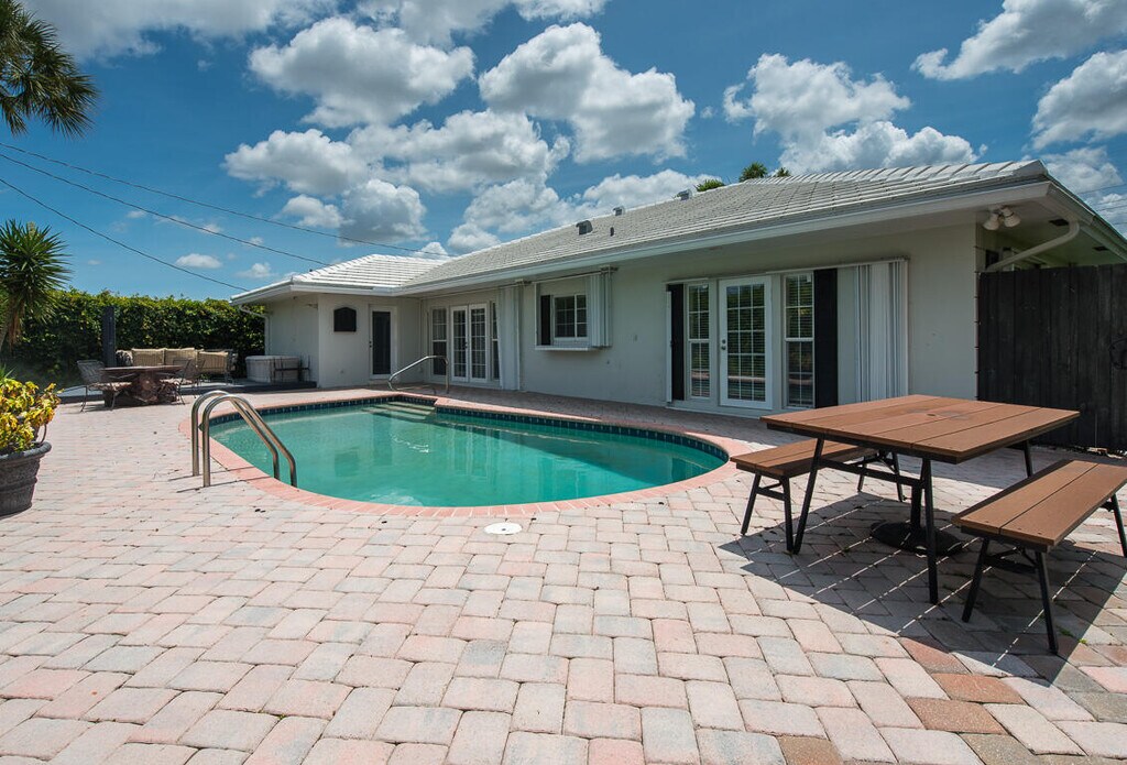 Spacious 3 bed/2 bath home in desirable east Boca Raton, subdivision Camino Gardens. Great floor plan with open kitchen and island that looks out onto the pool. Stainless steel appliances along with whole house water filtration system. This home comes with a 2 car garage, office with built in desk and cabinets, indoor laundry room with tub, cabinets and closet, Entire backyard fenced in, private pool, trex deck, front porch, and much more! Very pet friendly including a fenced in side yard for a pet run. All backyard furniture comes with house. Great school district as well. Located only 2 miles from the beach! Near I-95, restaurants, shopping, Mizner Park and The Boca Raton.