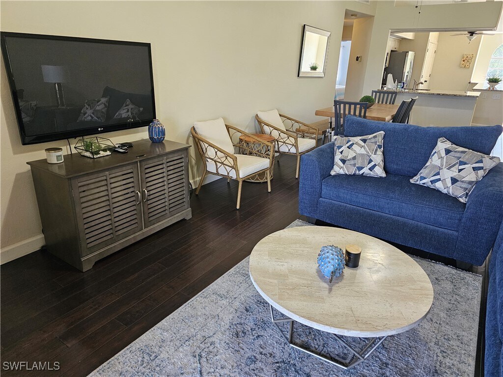 Available at a discounted rate,nicely furnished annual rental,available for immediate occupancy! The owner would also consider a seasonal rental at $4500/month for the season. This 3-bedroom,2-bath second-floor condo offers serene lake and golf course views in the highly desirable Worthington community in Bonita Springs. Spanning 1,312 square feet,the well-designed split-bedroom floor plan provides both privacy and functionality,ideal for comfortable year-round living. The open-concept layout seamlessly connects the kitchen,dining,and living areas—perfect for entertaining or relaxing. Large windows invite natural light throughout,while the screened lanai offers a peaceful retreat to enjoy the tranquil scenery. This residence includes an assigned covered carport and is just steps from the many amenities Worthington offers,including a championship golf course,tennis,fitness center,clubhouse,and resort-style pool. Conveniently located near fine dining,shopping,and the white-sand beaches of Southwest Florida,this is an exceptional opportunity to enjoy the Florida lifestyle in a gated golf community. Annual lease only. No pets per association rules.
