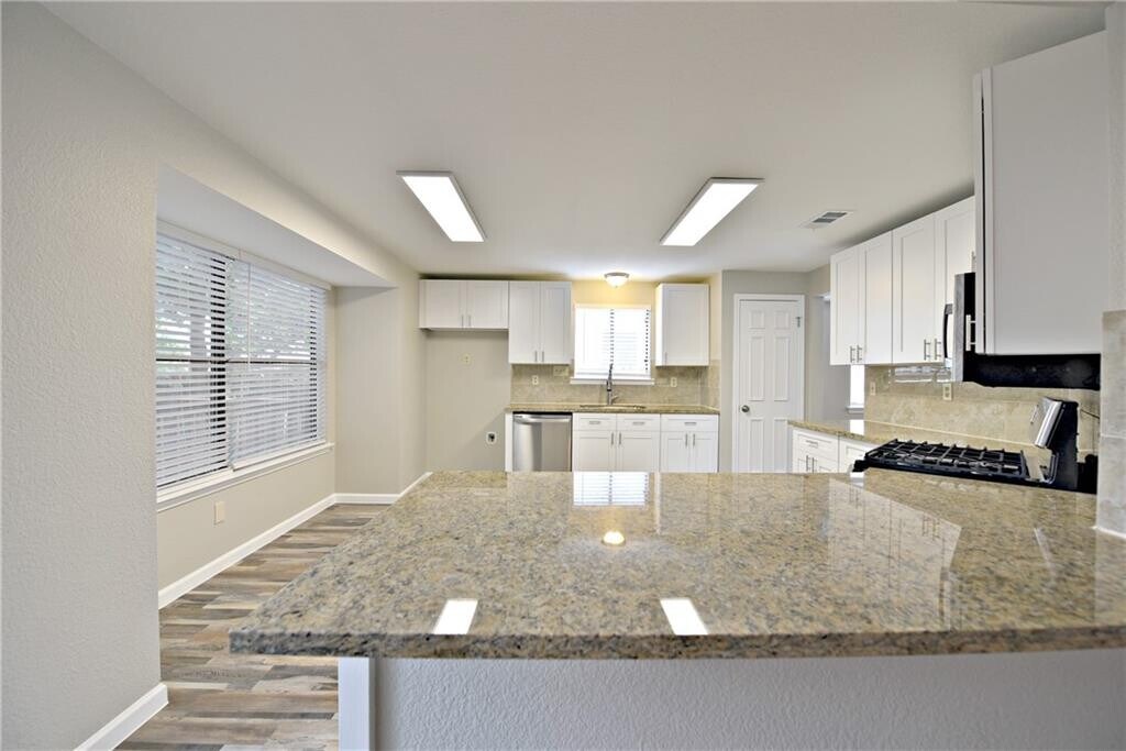 Gorgeous house in popular NW Austin. About 1 mile from Apple and 5 miles from Domain. Recently updated with new paint, SS appliances, light fixtures, window blinds, cabinets, counter-top, plumbing & light fixtures, water heater, HVAC, etc. Popular luxury vinyl plank flooring installed throughout. No carpet means less allergy and easy maintenance. Wine cabinet with sink to display your wine collection. Over-sized deck with large backyard to create your own oasis. Be part of this up-and-coming neighborhood! Available now!