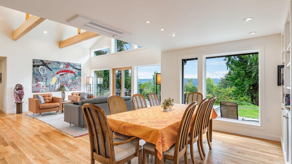 Experience the charm of Woodinville Wine Country in this beautifully remodeled Rambler, located just above the heart of the Woodinville Tourist District, on a private acre with stunning Cascade views. The home features an open living area and a spacious island kitchen, perfect for gatherings. A separate DADU offers flexibility for guests or multigenerational living. With over 100 wineries nearby, including the renowned Chateau Ste. Michelle Winery, and a backyard garden for fresh produce, this retreat offers the perfect blend of luxury, relaxation, and nature. The main house has 3 bedrooms, 2.5 bathrooms, and a DADU with 1 bed and a sofa bed (no bathroom). Both spaces together can sleep up to 8 guests and are about 2400 sqft. The large backyard facing east offers gorgeous views of nature and Cascade views. Each room in the main house has air conditioning and heating. The kitchen is fully stocked with high-quality appliances, a complete set of cookware, and abundant dinnerware perfect for entertaining. The living room and family room are equipped with smart TVs, perfect for your relaxation. Onsite washer and dryer are available for your laundry needs. There is plenty of parking in the carport, driveway, and street. The house provides an EV charger for your use (please bring your own plugs). This eco-friendly home with solar energy ensures continuous power even during outages. It is handicap accessible with a 5' ramp and features a wheelchair roll-in shower in the primary bathroom. We are excited to offer our guests a bottle of our exclusive private label wine, crafted by Northwest Cellars. Custom wine labels can be designed at no additional charge if you provide the artwork or photo. Nestled in the beautiful area of the Pacific Northwest, this home is known for its wineries, outdoor activities, and scenic beauty. The best way to explore this area is by car. Guest access will be granted via a smart lock. This is not a pet-friendly home and there is a $500 fine for unauthorized pets. Strictly no parties and events, quiet hours between 10pm-8am, no smoking or vaping of any kind anywhere on the property including outdoor areas, no digital piracy, and no shoes in the home. There is a $500 fine per violation. [SI]